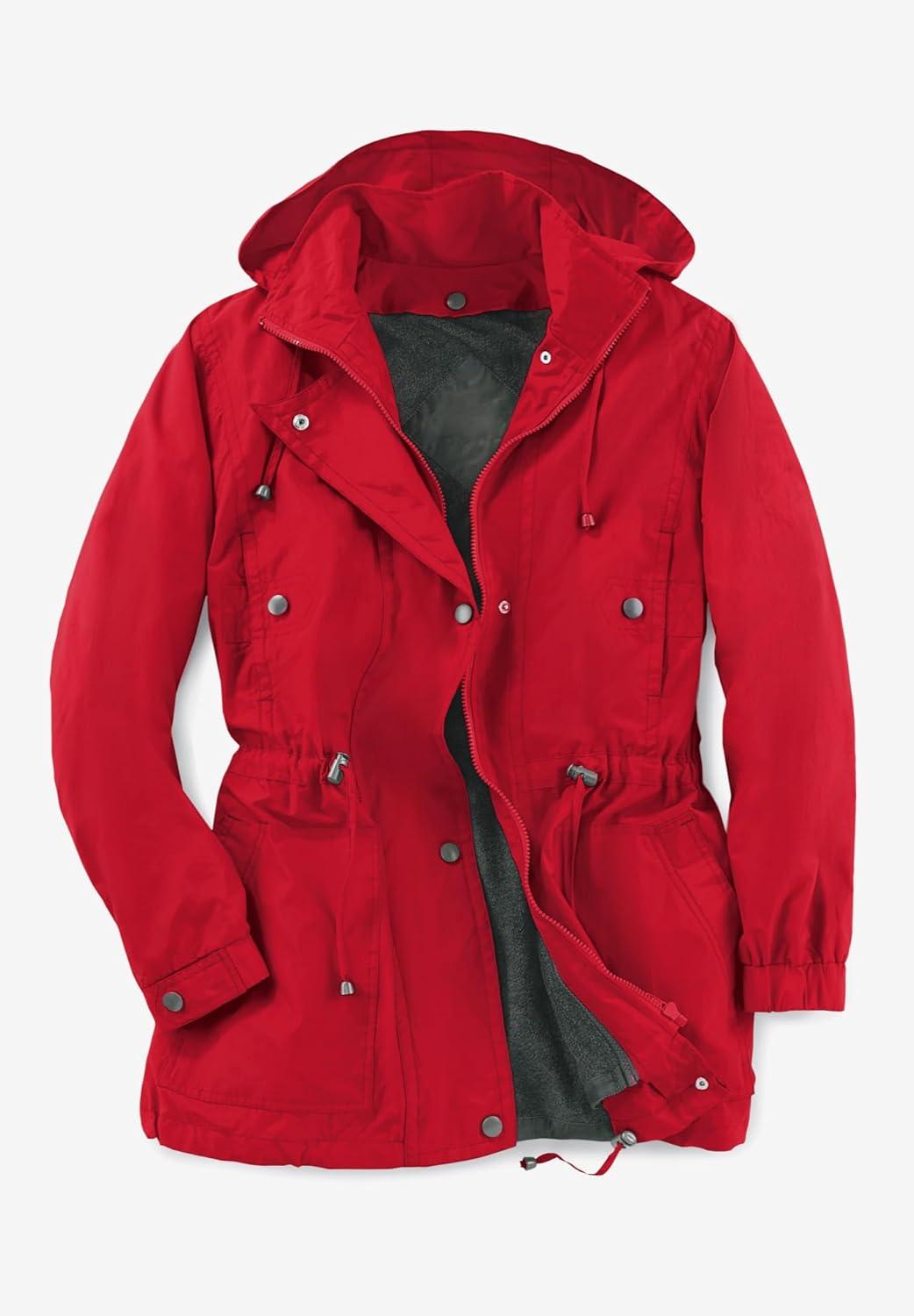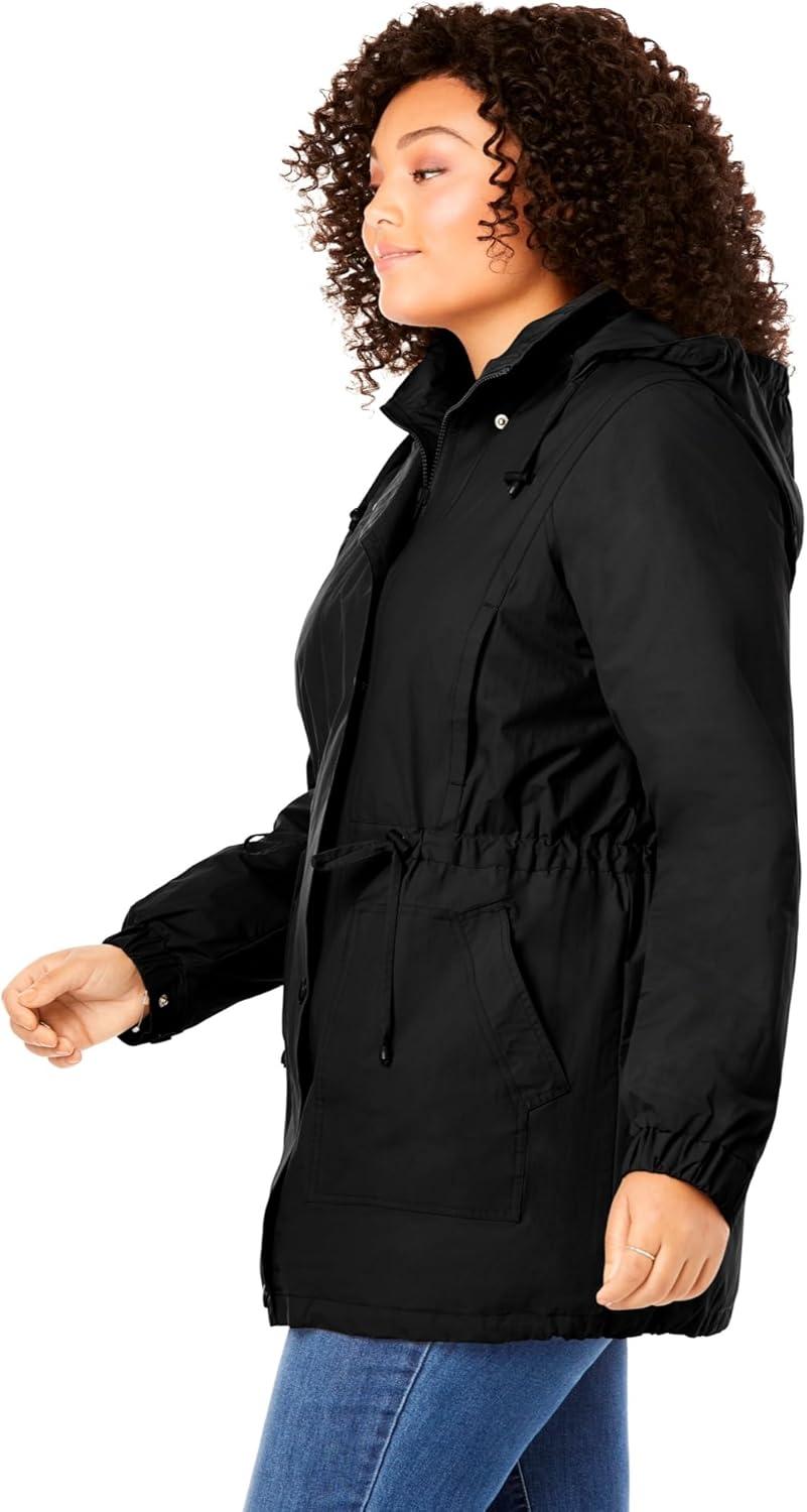 Woman Within Plus Size Fleece-Lined Taslon Anorak(Black)