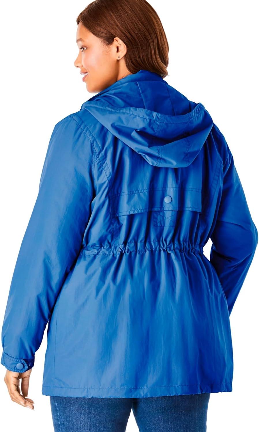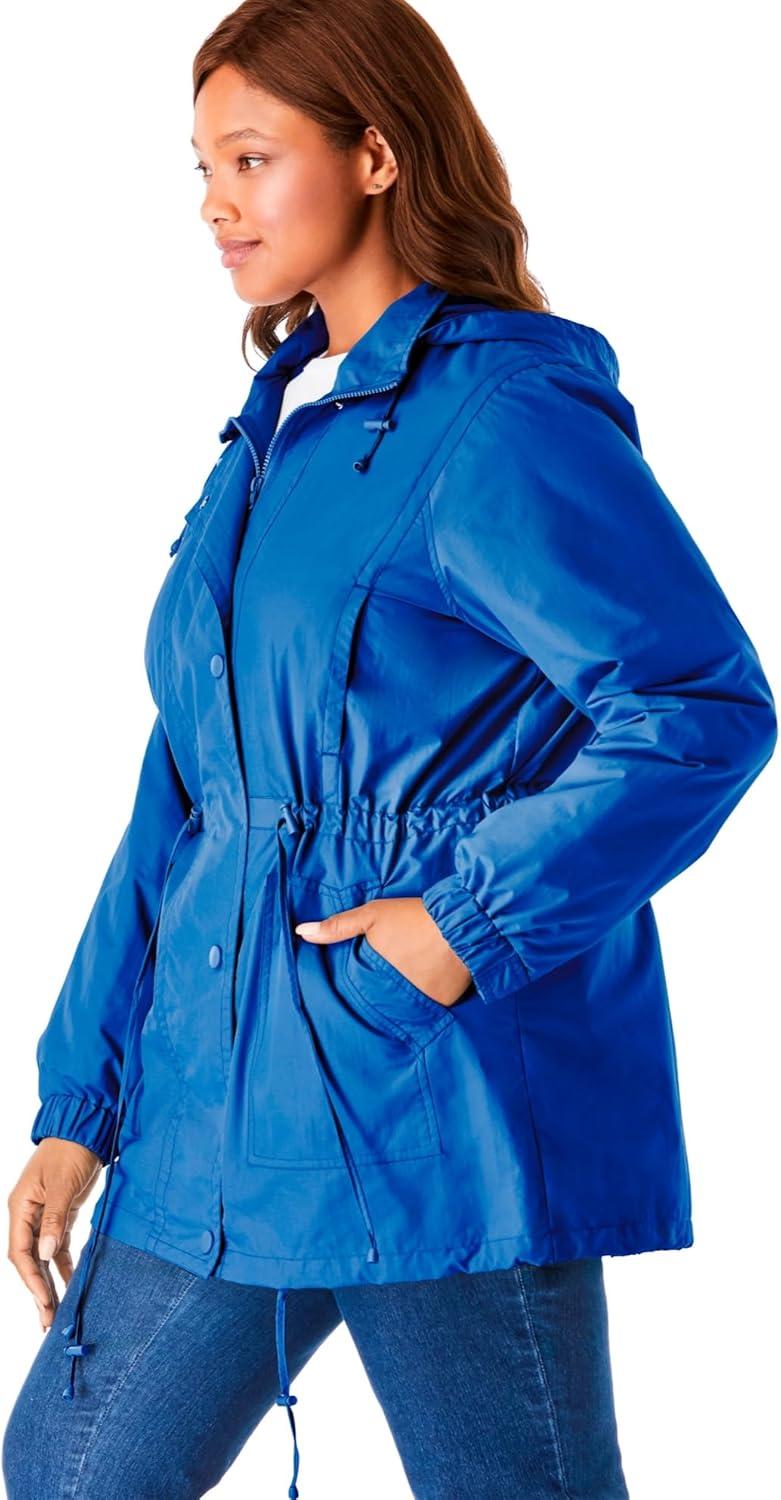 Woman Within Plus Size Fleece-Lined Taslon Anorak(Bright Cobalt)