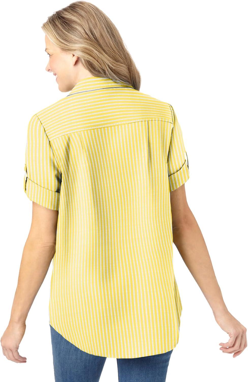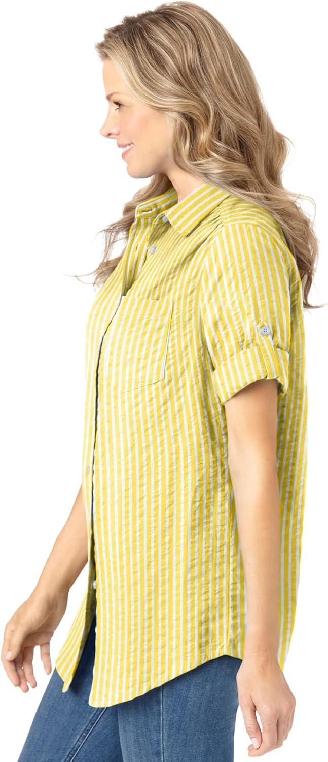 Woman Within Plus Size Short-Sleeve Button Down Seersucker Shirt(Primrose Yellow Pop Stripe)