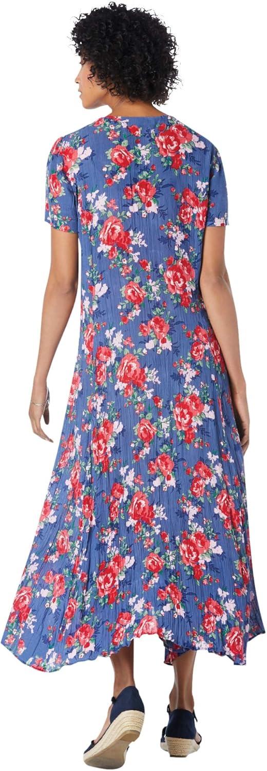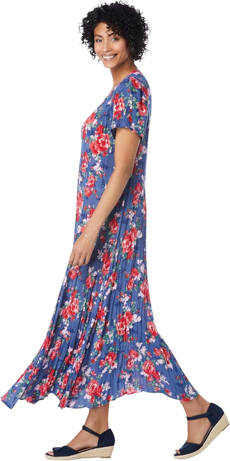 • Woman Within Plus Size Short-Sleeve Crinkle Dress(Evening Blue Wild Floral)