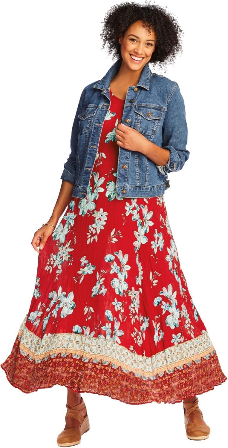 • Woman Within Plus Size Short-Sleeve Crinkle Dress(Vivid Red Bloom Flower)
