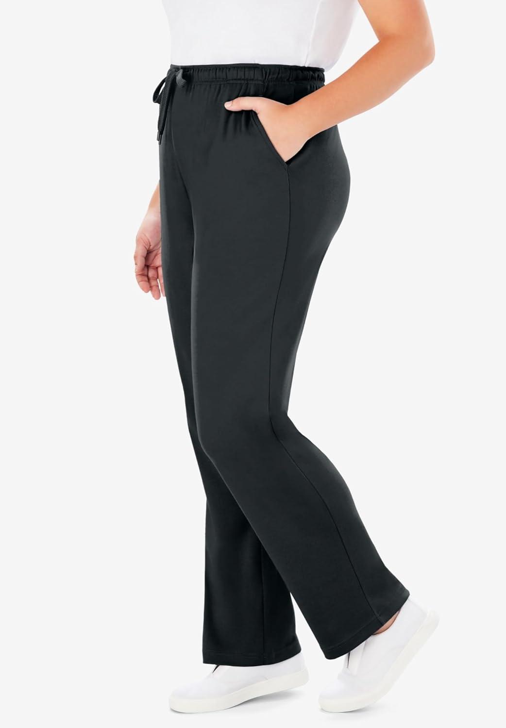 Woman Within Plus Size Sport Knit Straight-Leg Pull-On Pants(Heather Charcoal)
