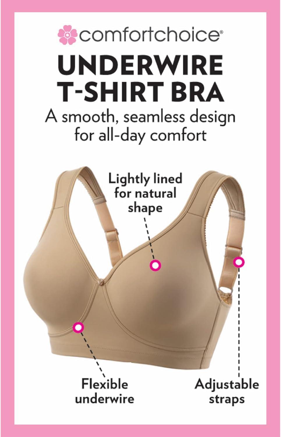 Comfort Choice Women’s Plus Size Underwire Microfiber T-Shirt Bra(Nude)