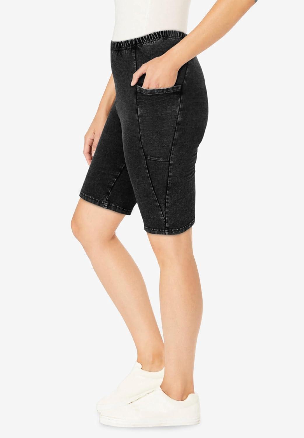 Woman Within Plus Size Stretch Cotton Pocket Bike Short(Black Wash)