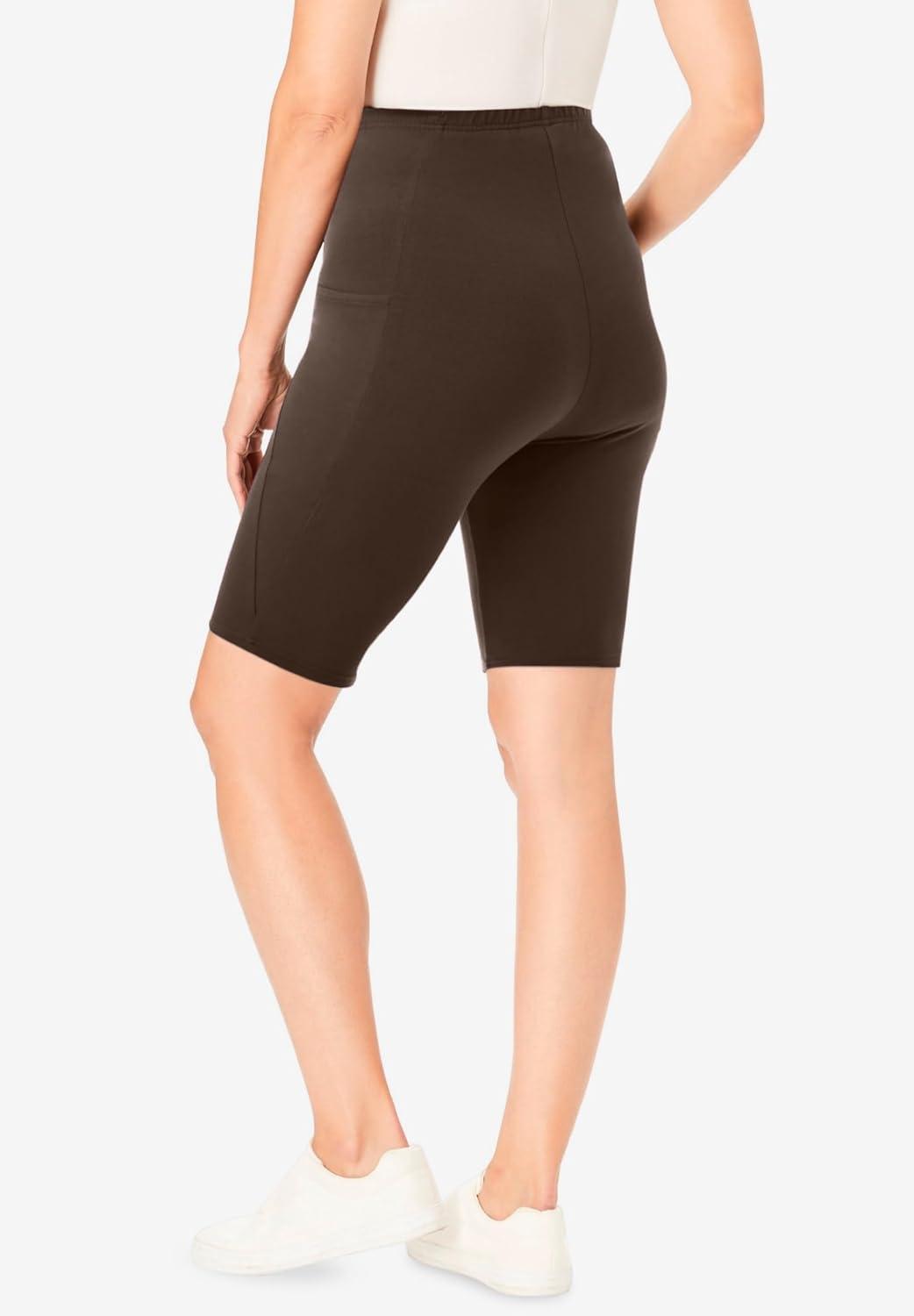 Woman Within Plus Size Stretch Cotton Pocket Bike Short(Chocolate)