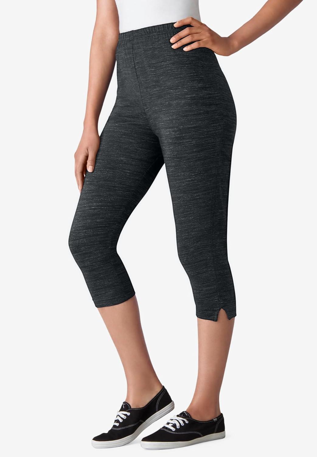 Woman Within Plus Size Stretch-Cotton Knit Pull-On Capri Leggings(Heather Charcoal)