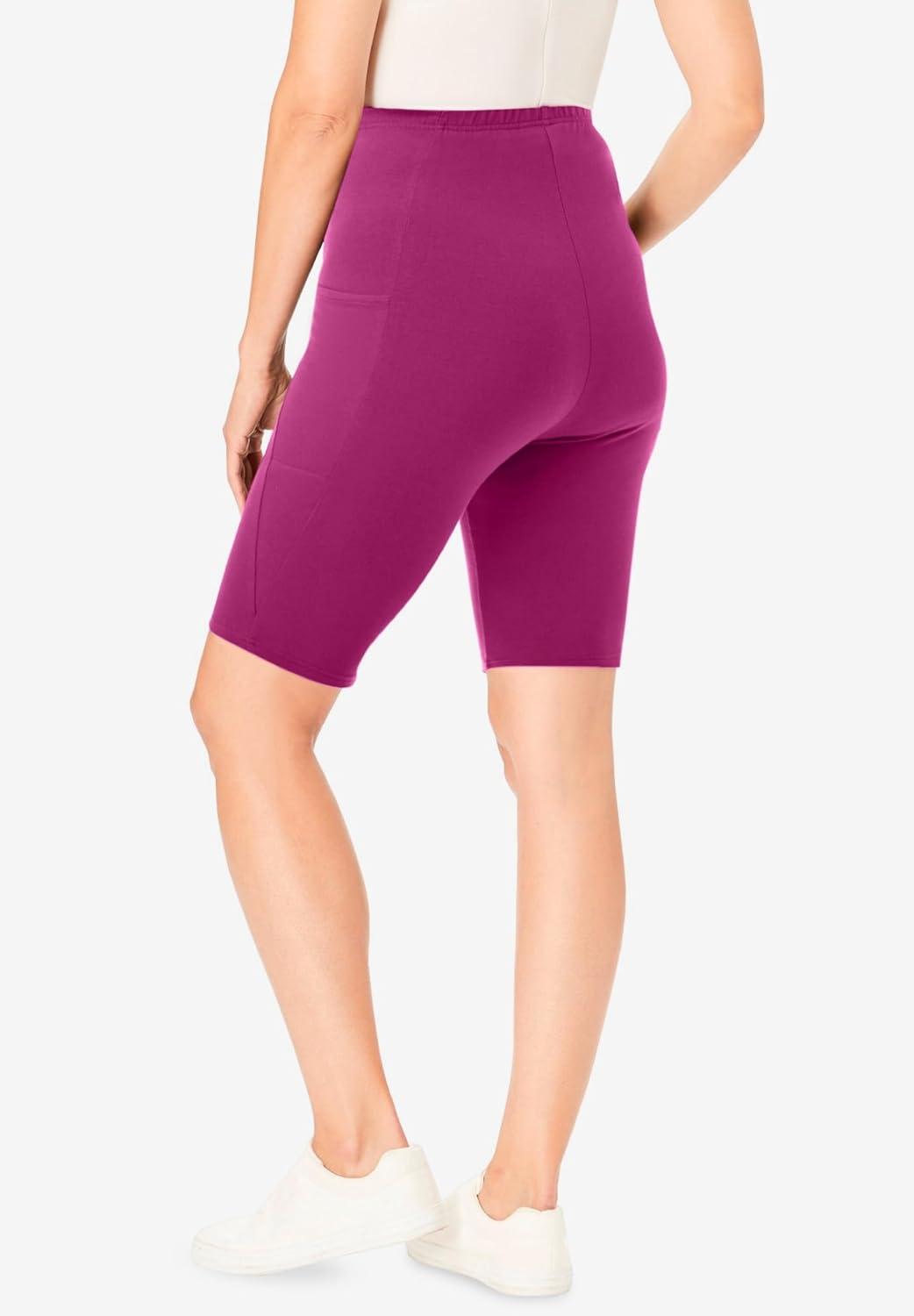 Woman Within Plus Size Stretch Cotton Pocket Bike Short(Raspberry)