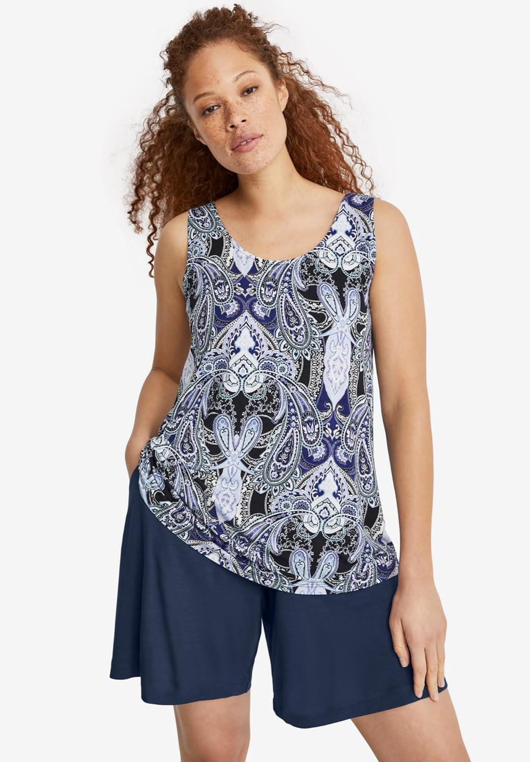 ellos Plus Size Knit Capri Leggings(Navy Paisley)