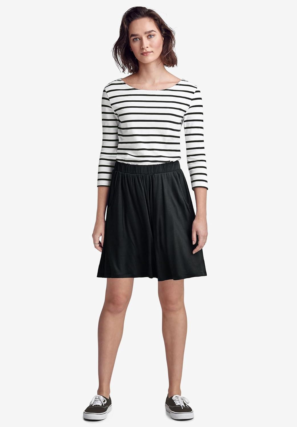 ellos Plus Size Flowy Shorts(Black)