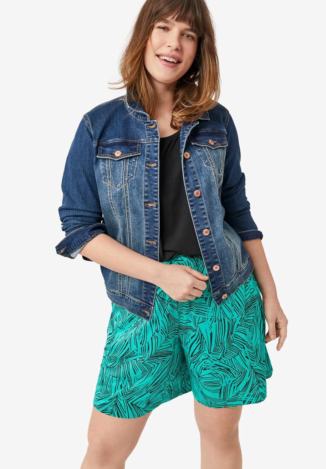 ellos Plus Size Denim Boyfriend Shorts(Medium Stonewash)