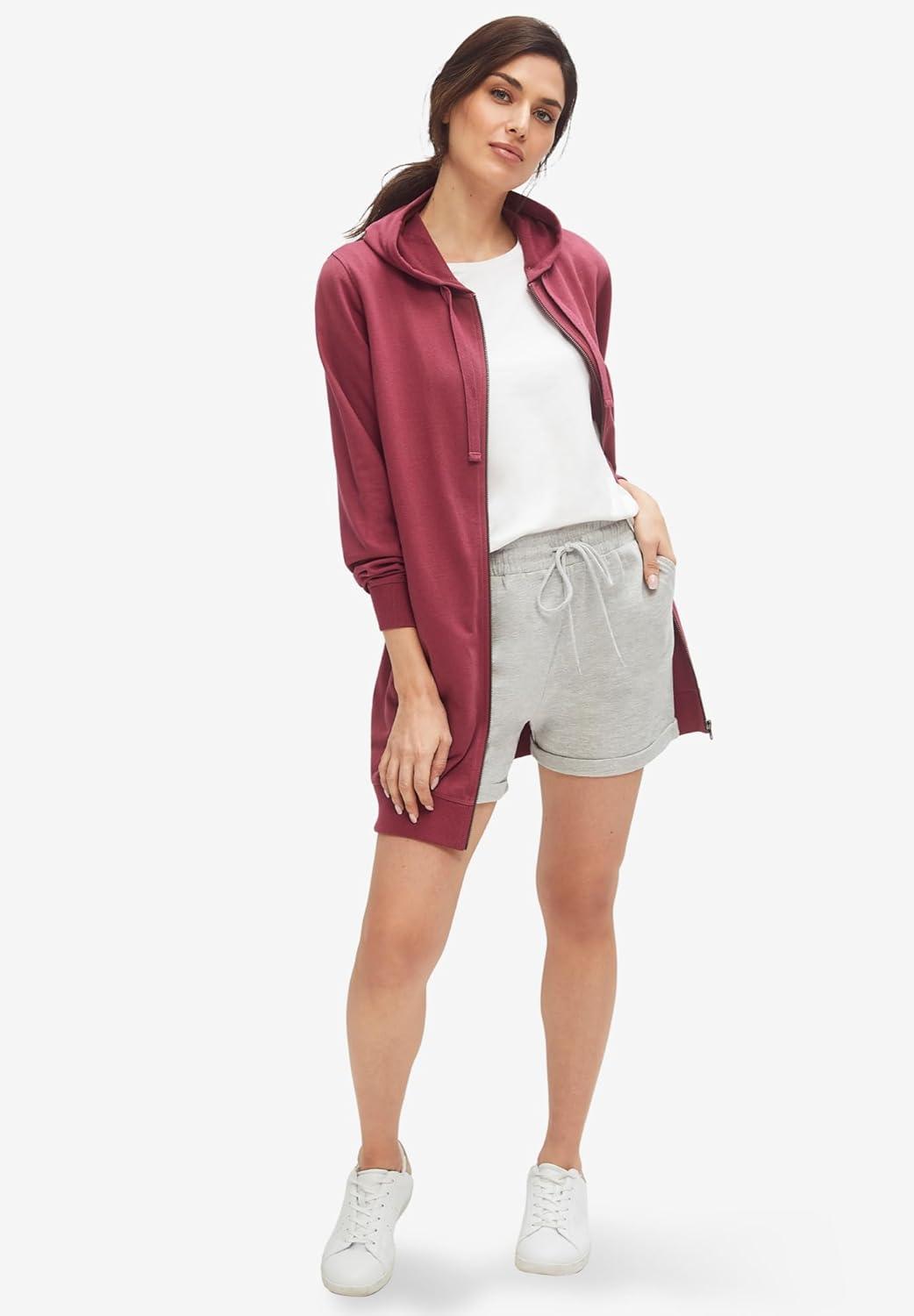ellos Plus Size French Terry Drawstring Shorts(White)