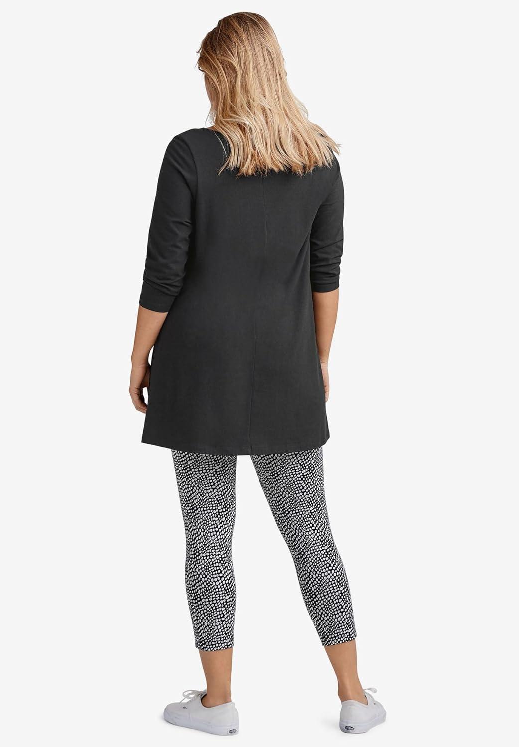 ellos Plus Size Knit Capri Leggings(Black White Camouflage)