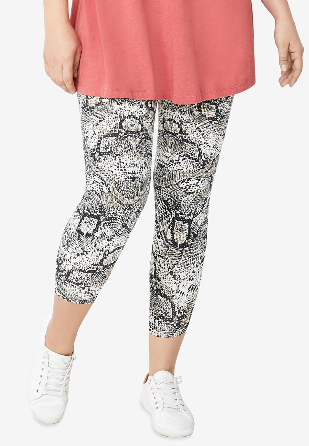 ellos Plus Size Knit Capri Leggings(Black Reptile)