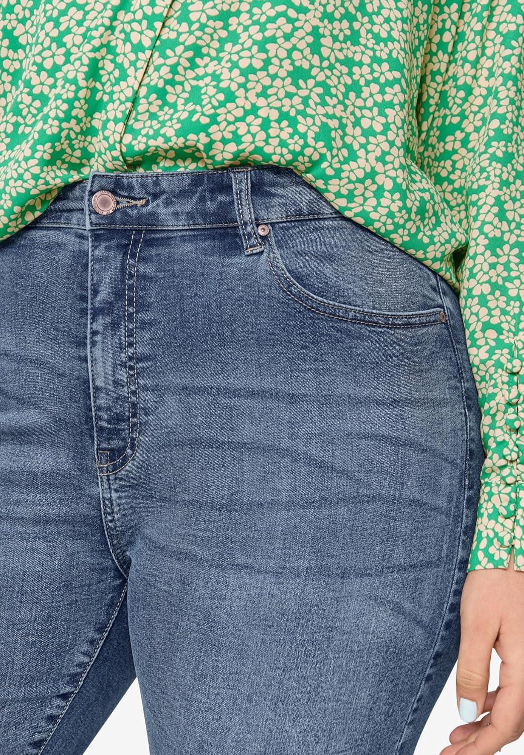 ellos Plus Size Slim 5-Pocket Denim Capri(Medium Stonewash)