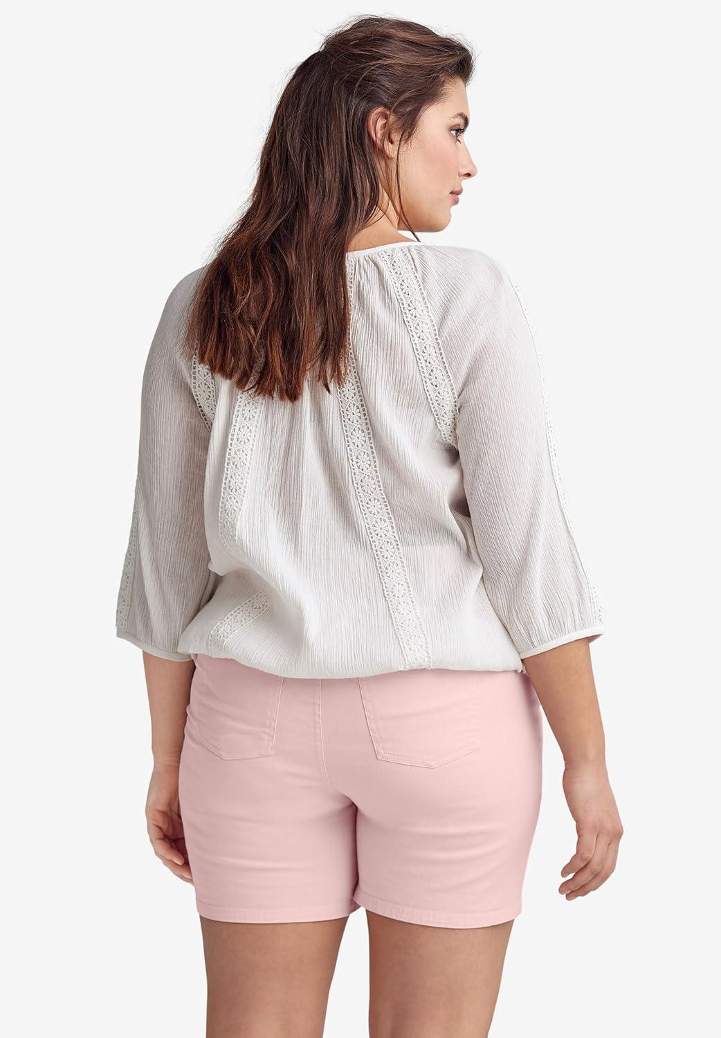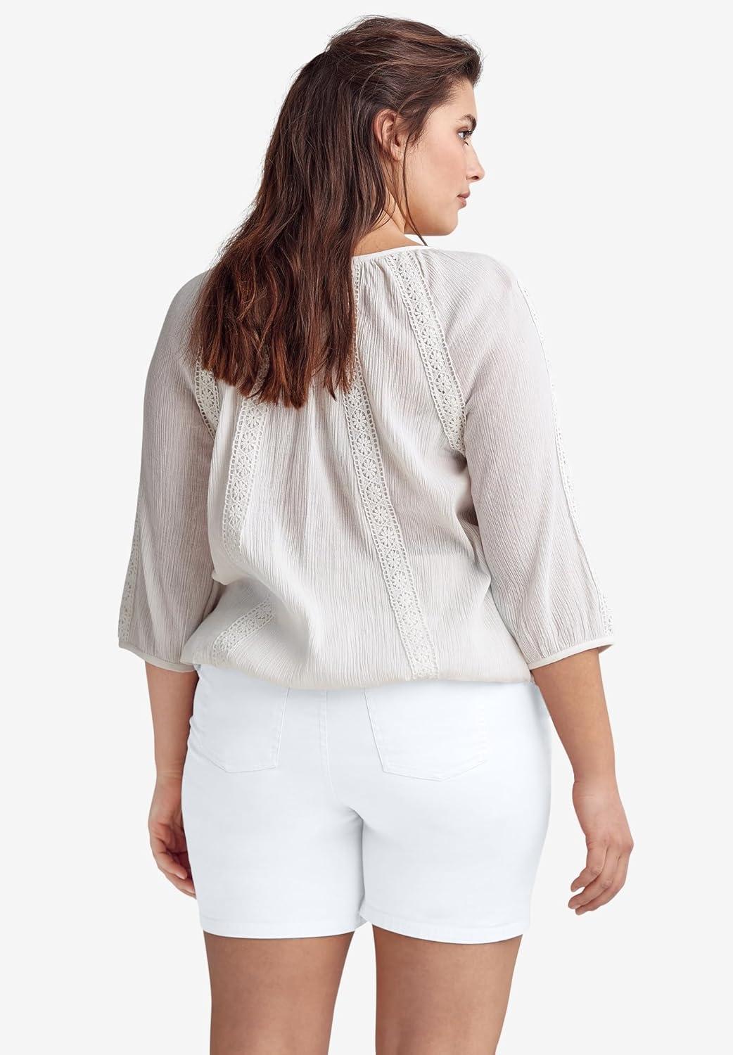 ellos Plus Size Stretch 5-Pocket Shorts(White)