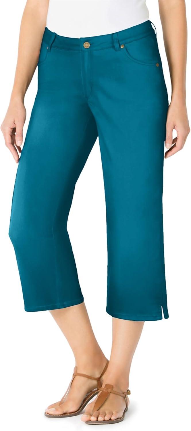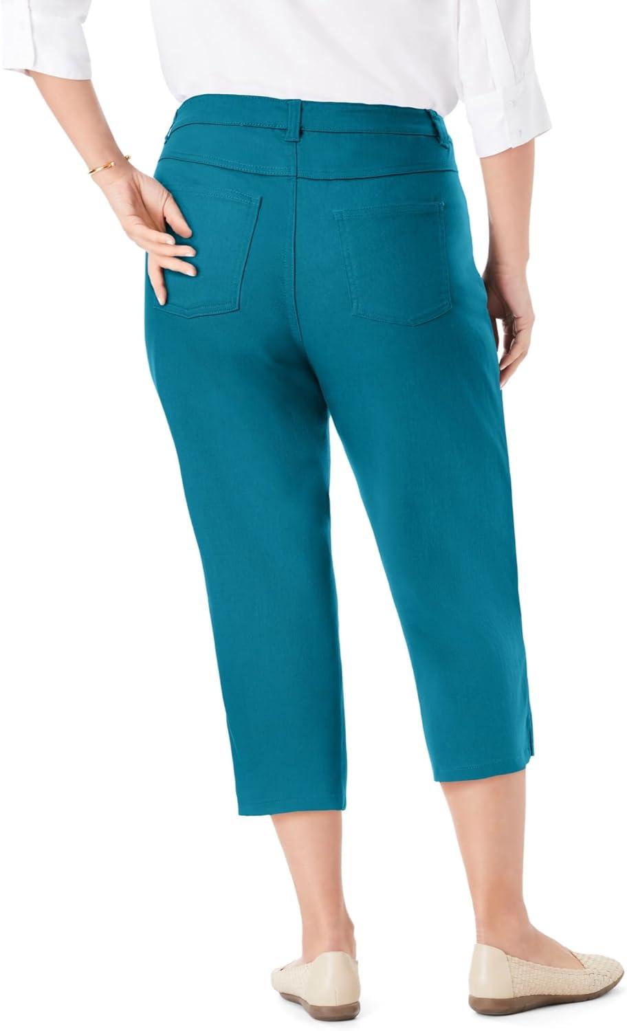 Woman Within Plus Size Stretch Denim Five-Pocket Capri Jeans(Emerald Green)