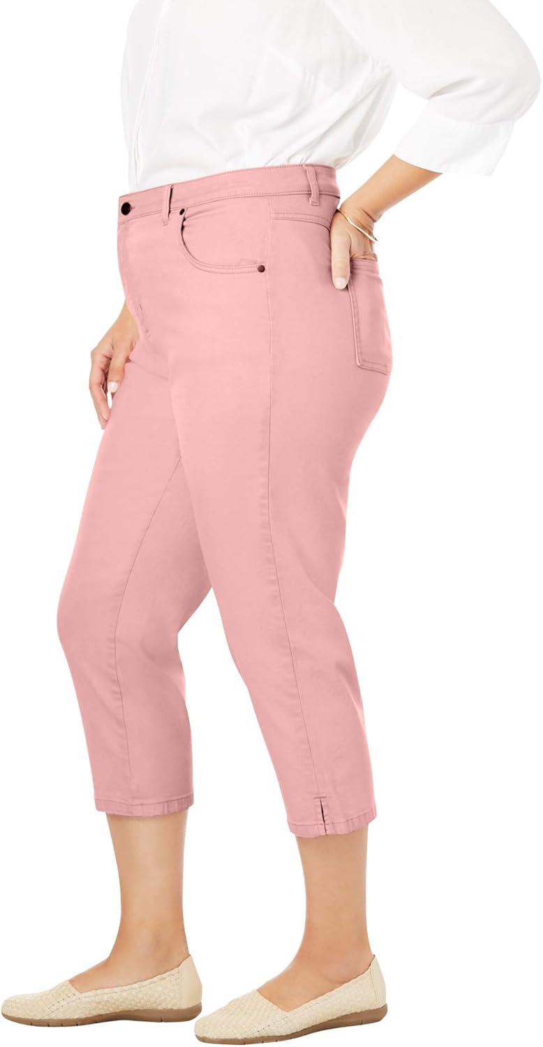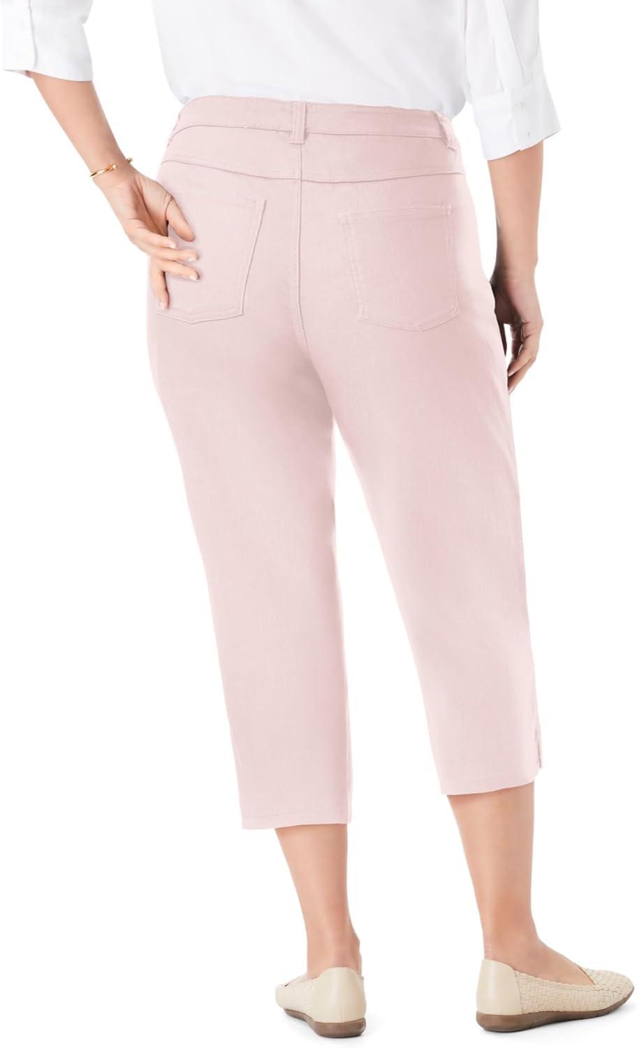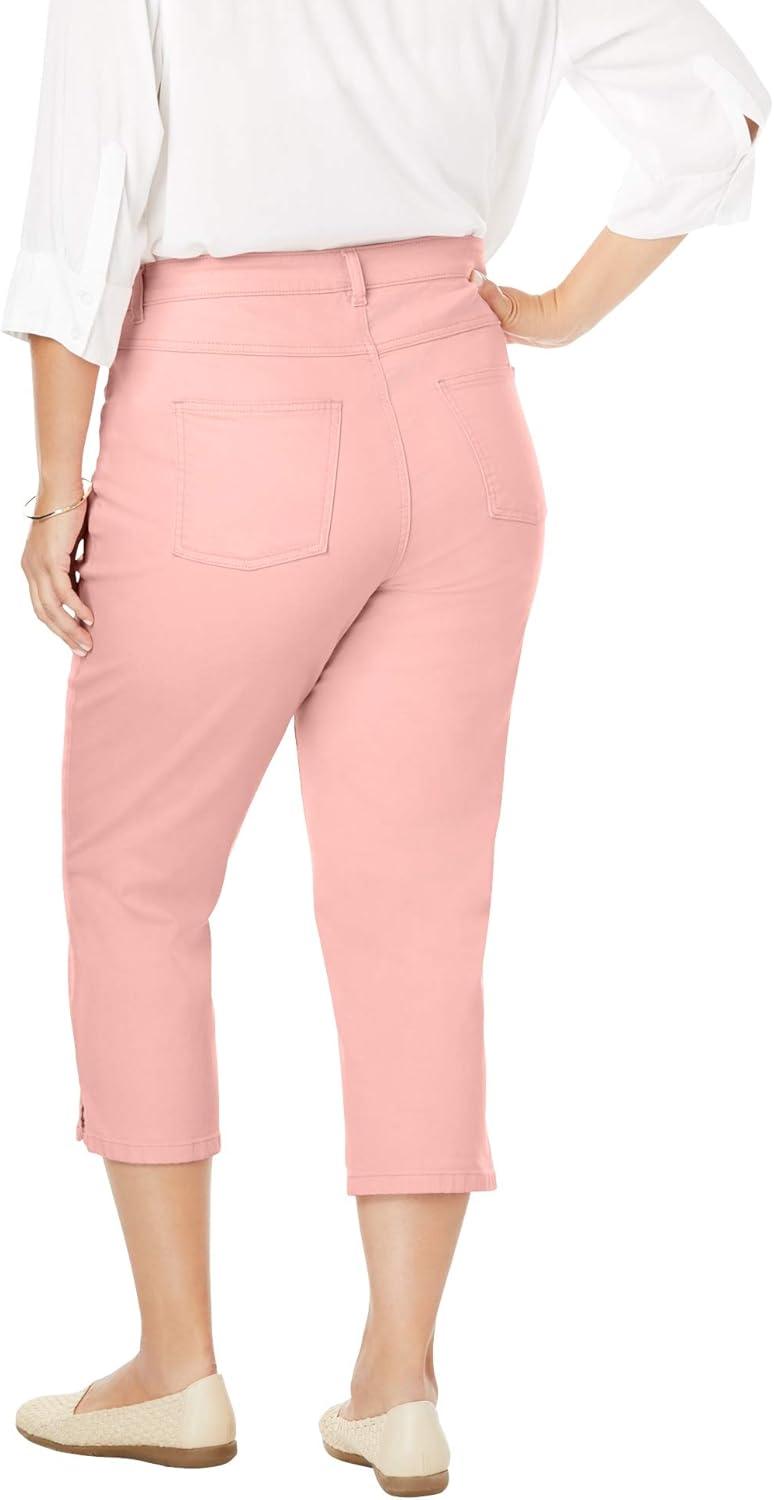 Woman Within Plus Size Stretch Denim Five-Pocket Capri Jeans(Delicate Pink)