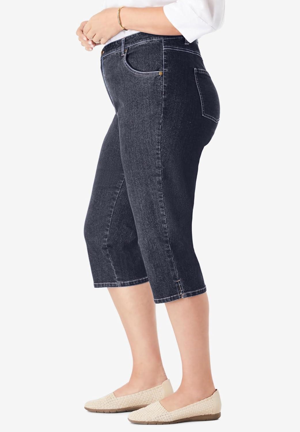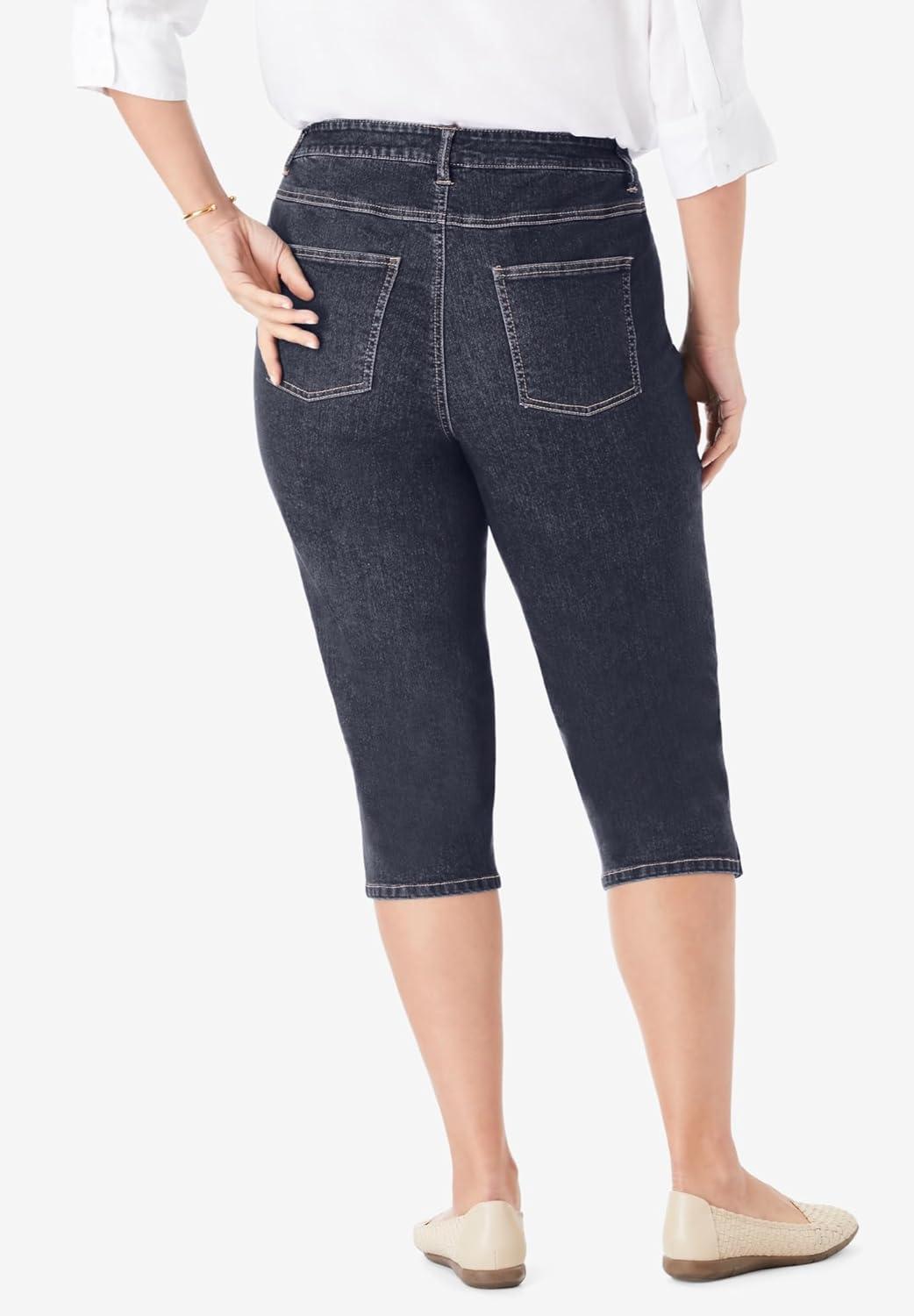 Woman Within Plus Size Stretch Denim Five-Pocket Capri Jeans(Black Denim)