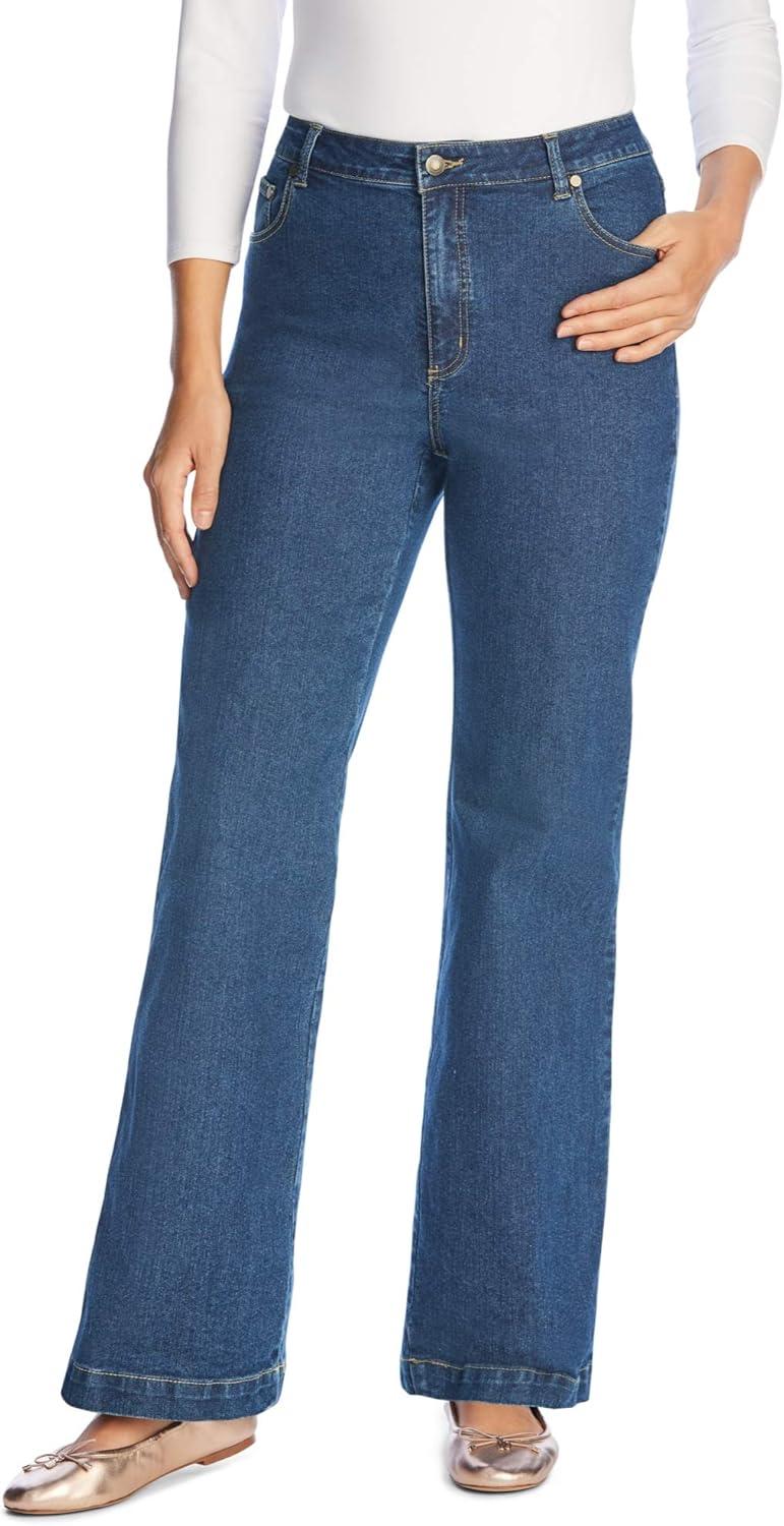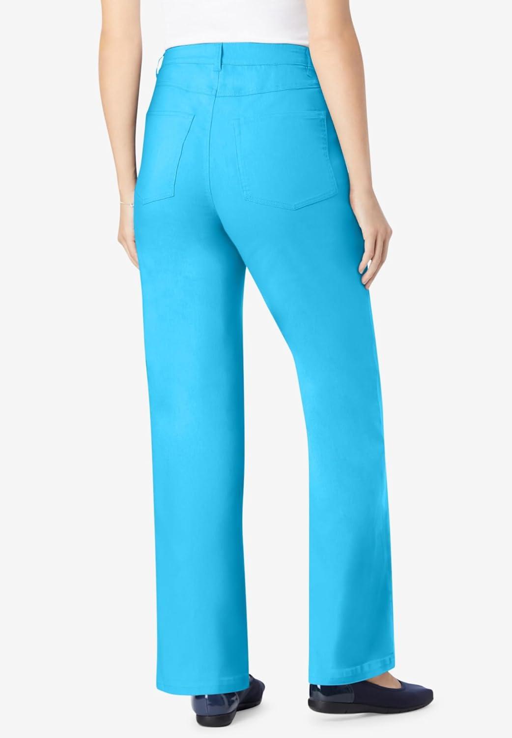 Woman Within Plus Size Stretch Denim Wide-Leg Five-Pocket Jeans(Paradise Blue)