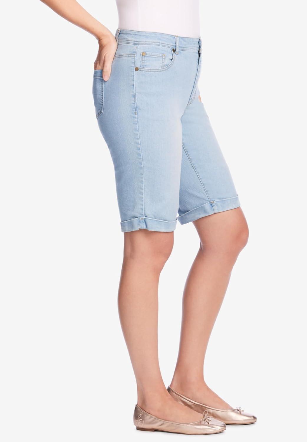 Woman Within Plus Size Stretch-Denim Five-Pocket Bermuda Jeans Shorts(Medium Stonewash)