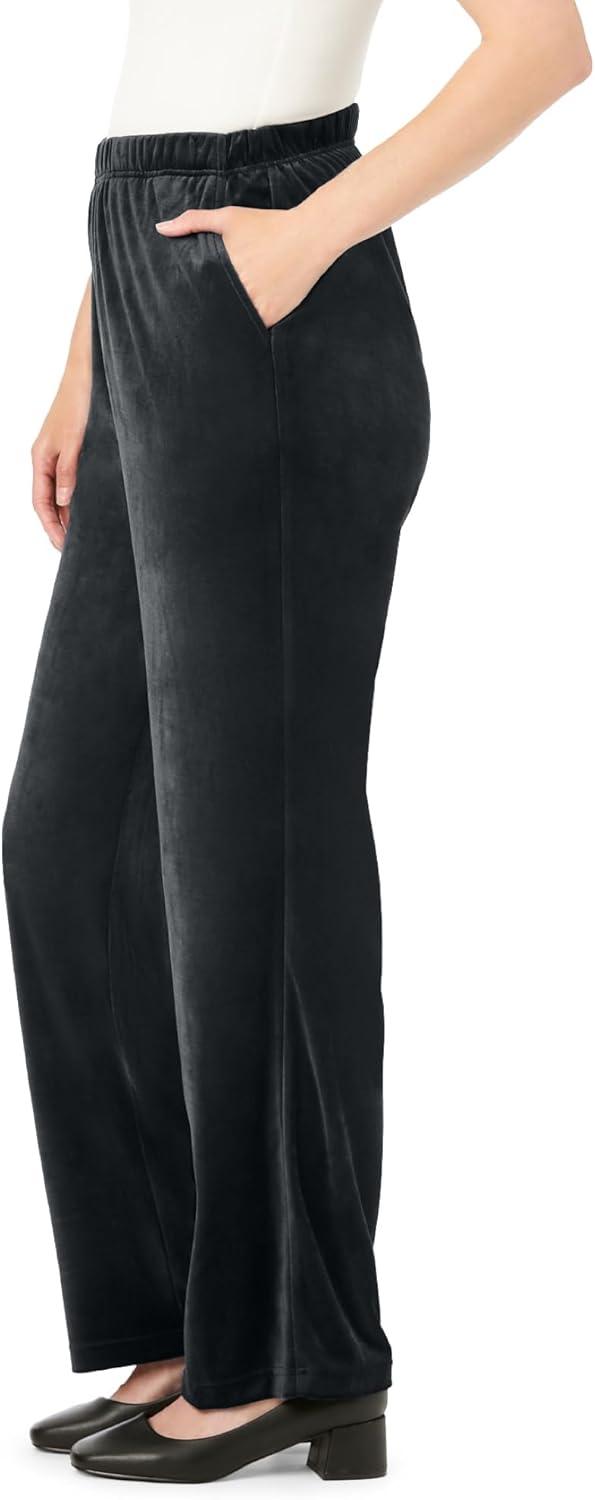 Woman Within Plus Size Wide-Leg Velour Pant(Black)
