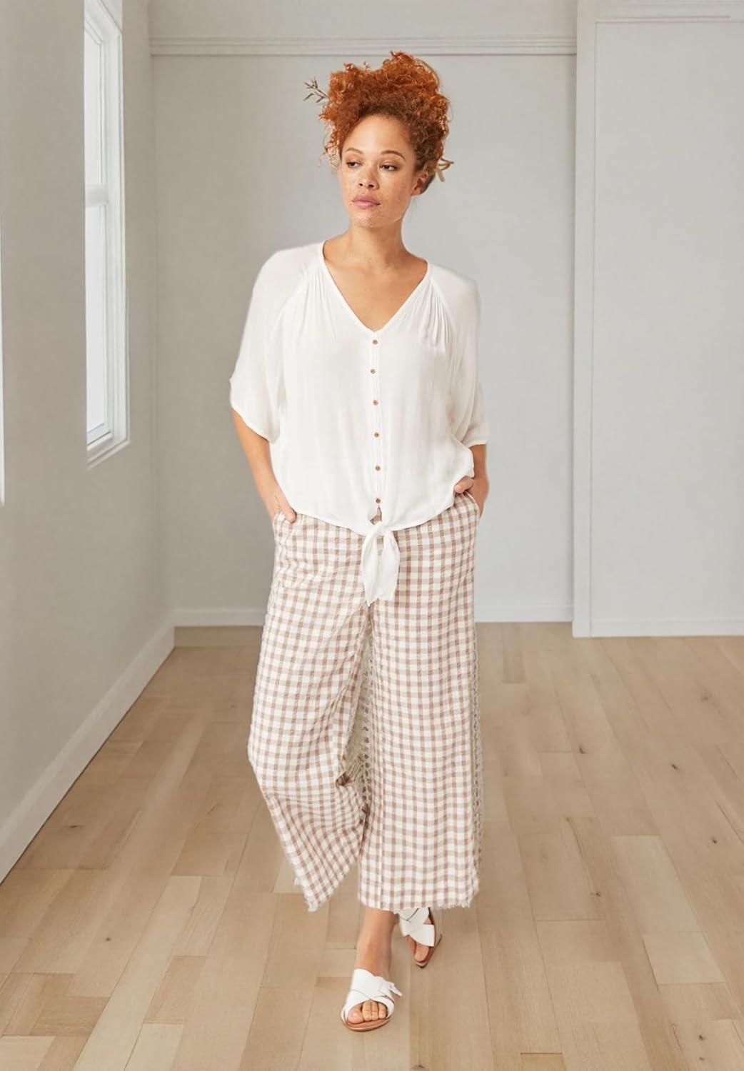 ellos Plus Size Gingham Crop Pants(Brown Sugar Ivory Gingham)