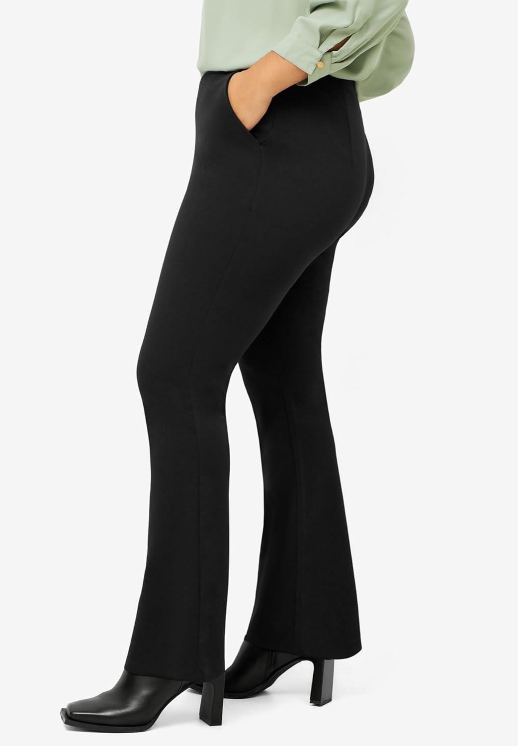 ellos Plus Size Knit Bootcut Pants with Pockets(Black)
