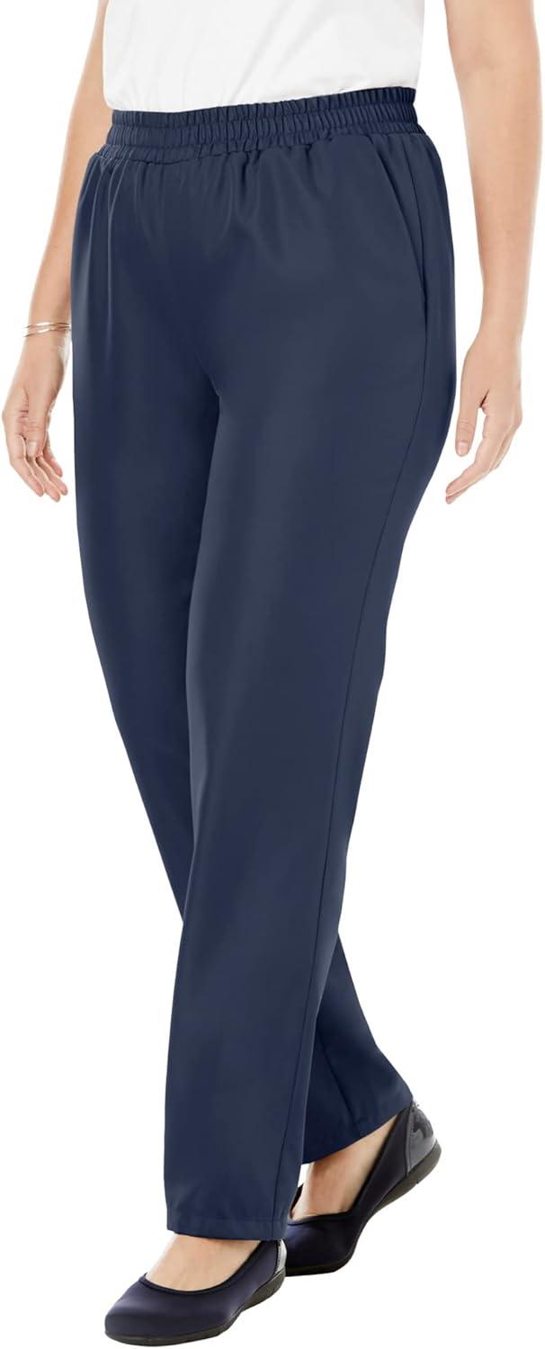 Woman Within Plus Size Petite Woven Pull-On Pants(Navy)