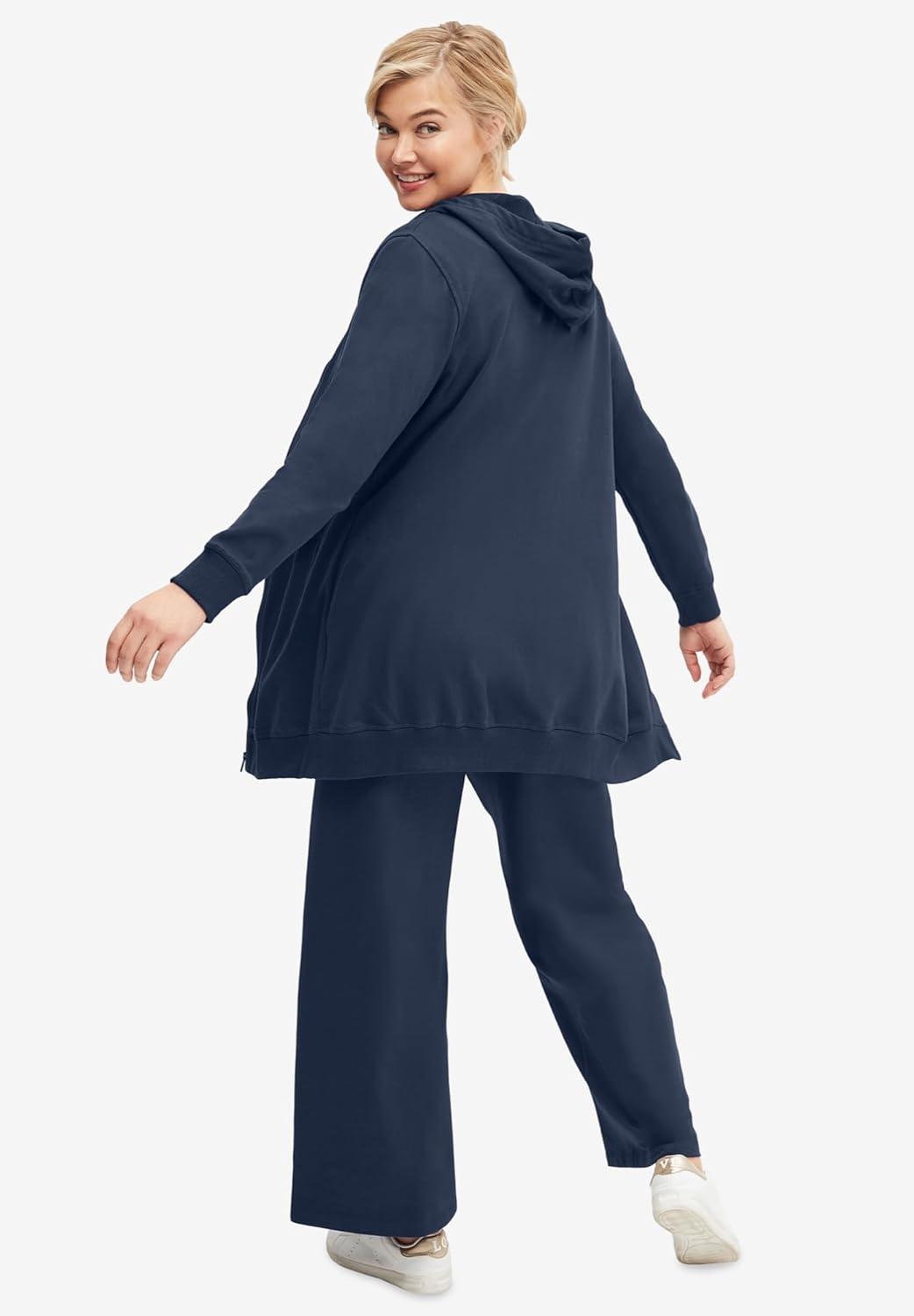 ellos Plus Size Wide Leg French Terry Sweatpant(Navy)