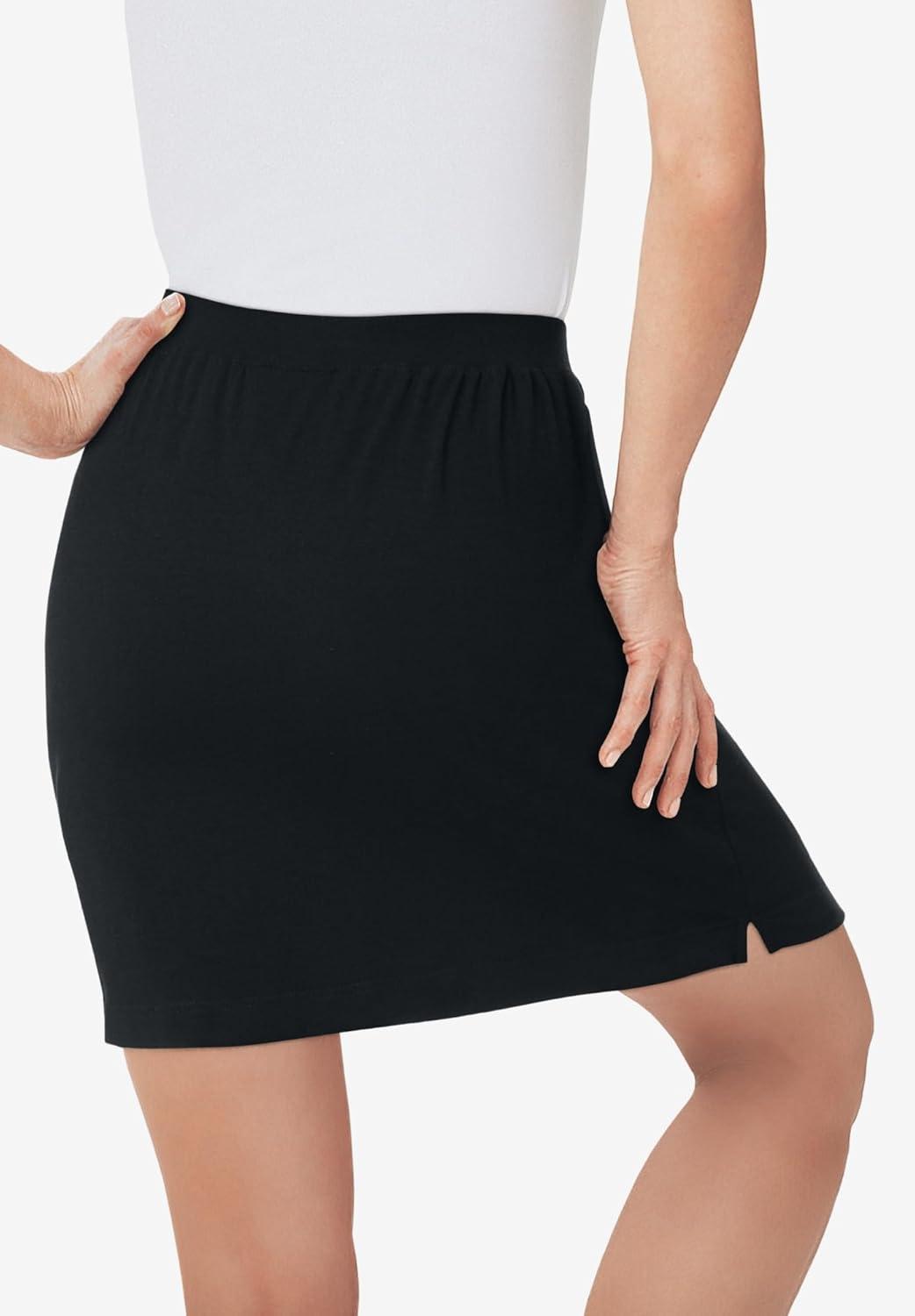 Woman Within Plus Size Stretch Cotton Skort(Black)
