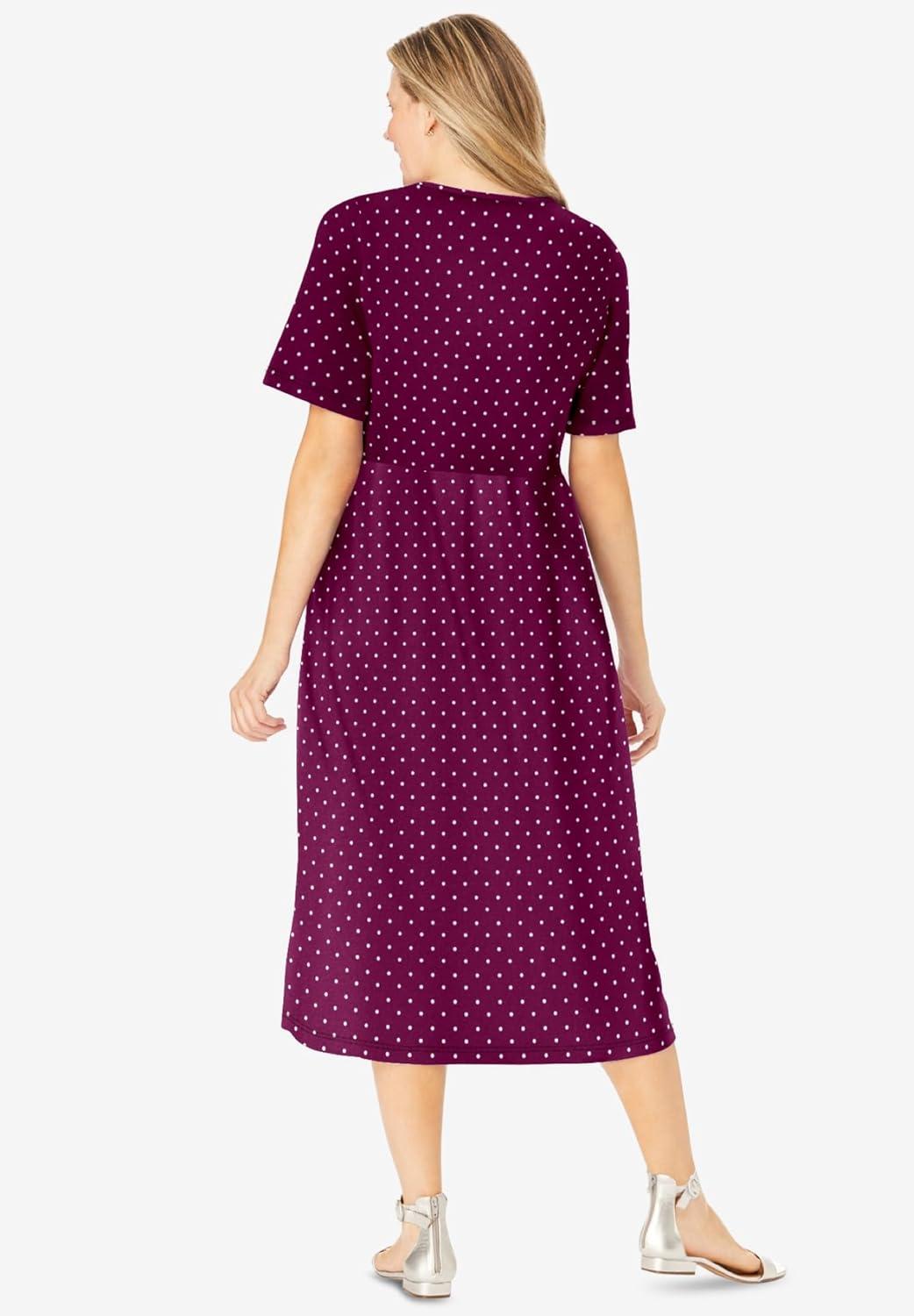 Woman Within Women’s Plus Size Button-Front Essential Dress(Deep Claret Polka Dot)