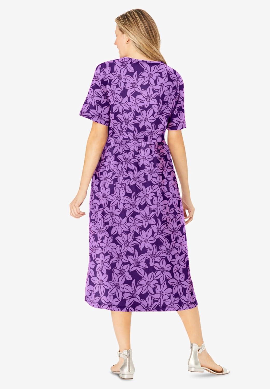 Woman Within Women’s Plus Size Button-Front Essential Dress(Purple Blossom)