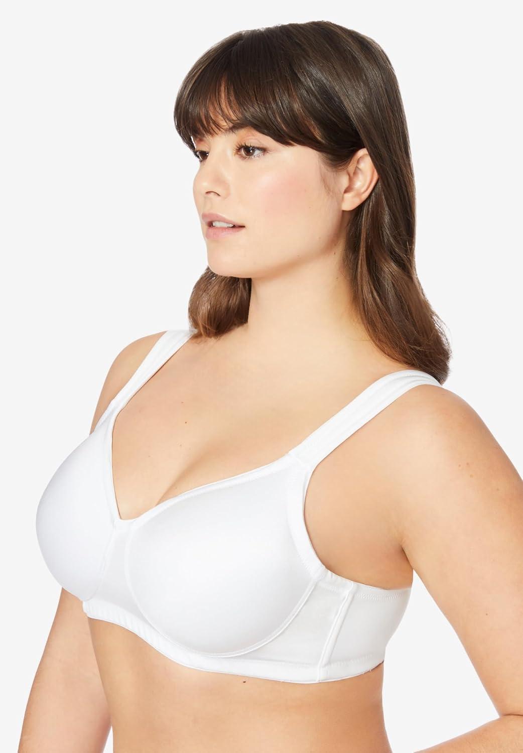 Comfort Choice Women’s Plus Size Limitless Wirefree Low-Impact Back Hook Bra(White)
