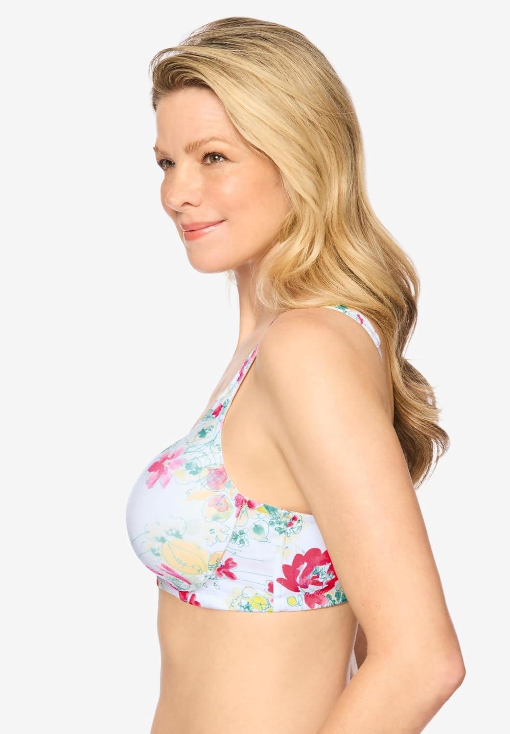 Comfort Choice Women’s Plus Size Microfiber Wireless Lightly Padded T-Shirt(White Botanical)