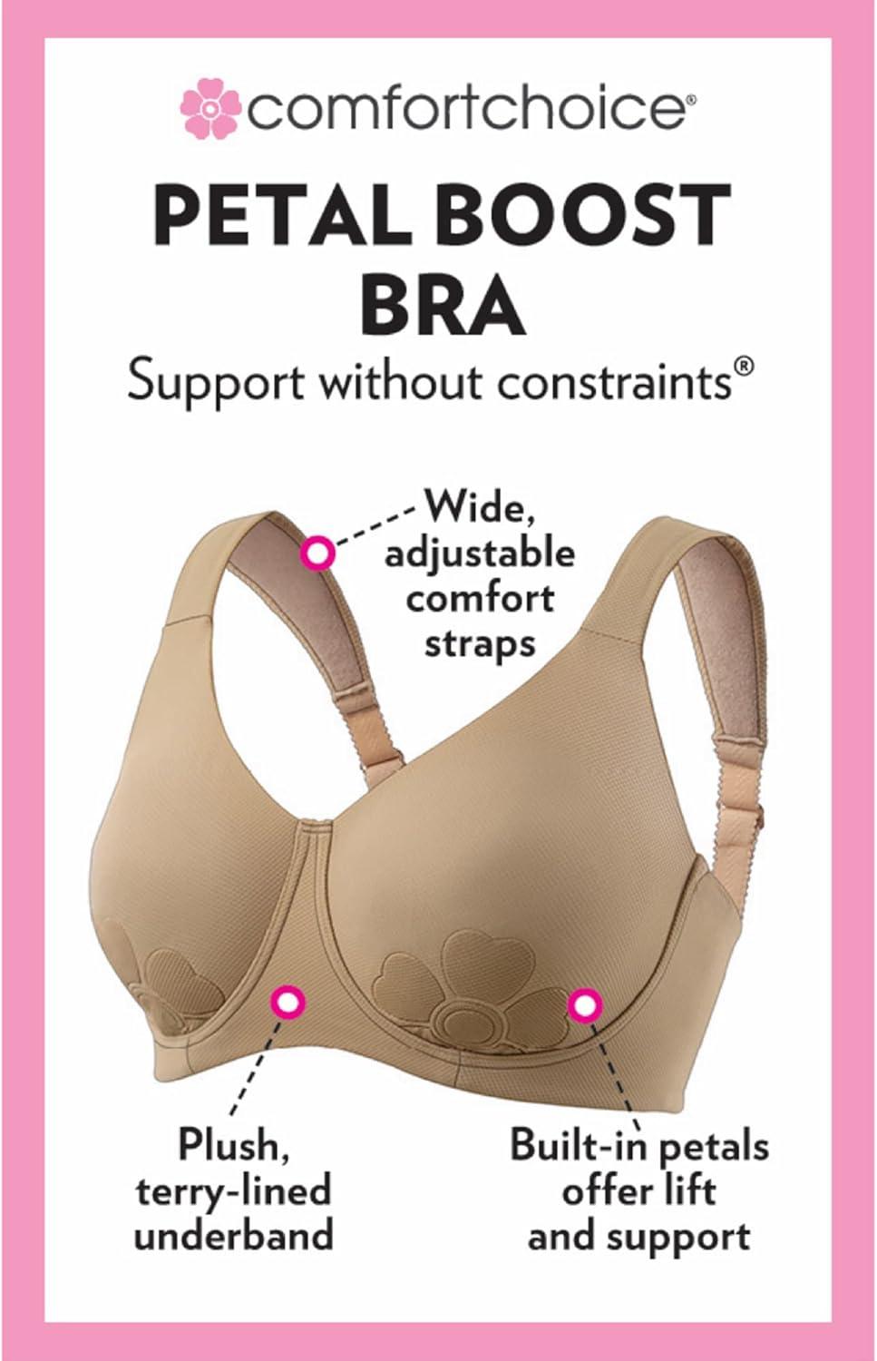 Comfort Choice Women’s Plus Size Petal Boost Underwire Bra(Nude)