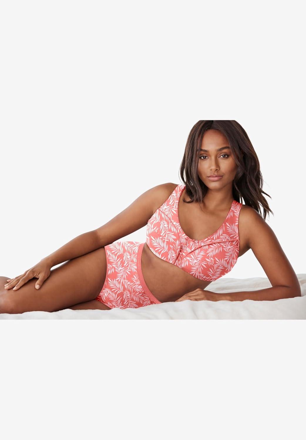 Comfort Choice Women’s Plus Size Cotton Back-Close Wireless Bra(Scattered Cherry)