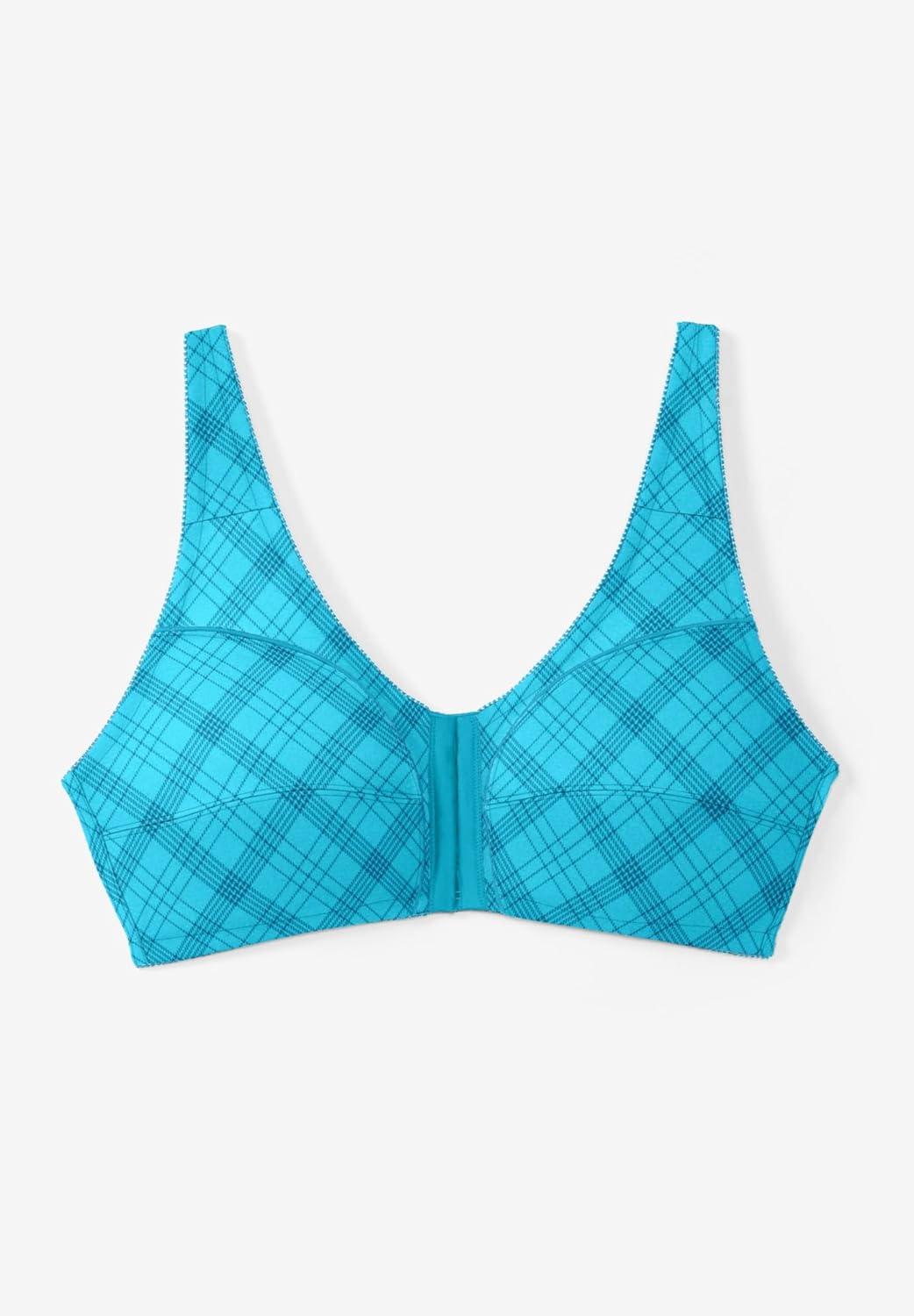 • Comfort Choice Women’s Plus Size Cotton Front-Close Wireless Bra(Caribbean Blue Bias Plaid)
