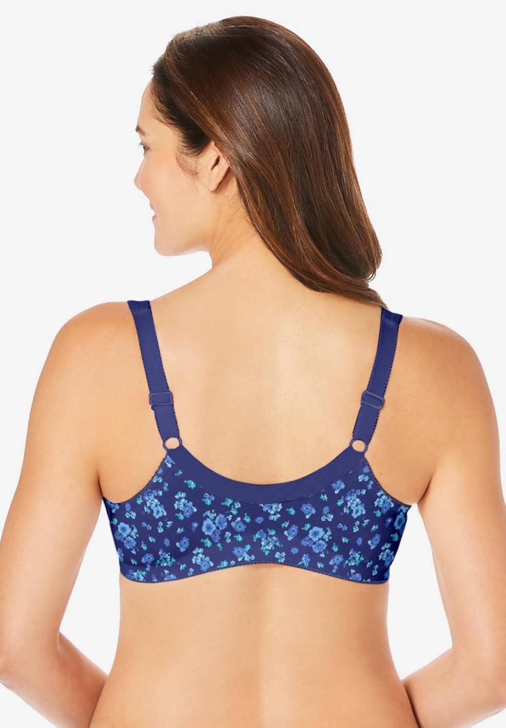 • Comfort Choice Women’s Plus Size 3-Pack Front-Close Cotton Wireless Bra(Dark Turq Assorted)