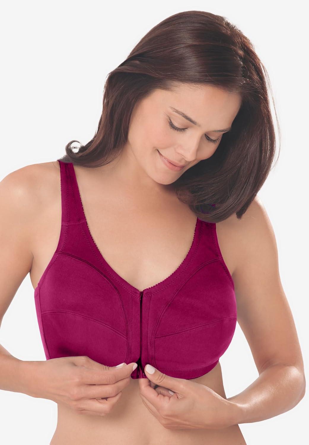 • Comfort Choice Women’s Plus Size 3-Pack Front-Close Cotton Wireless Bra(Pomegranate Assorted)