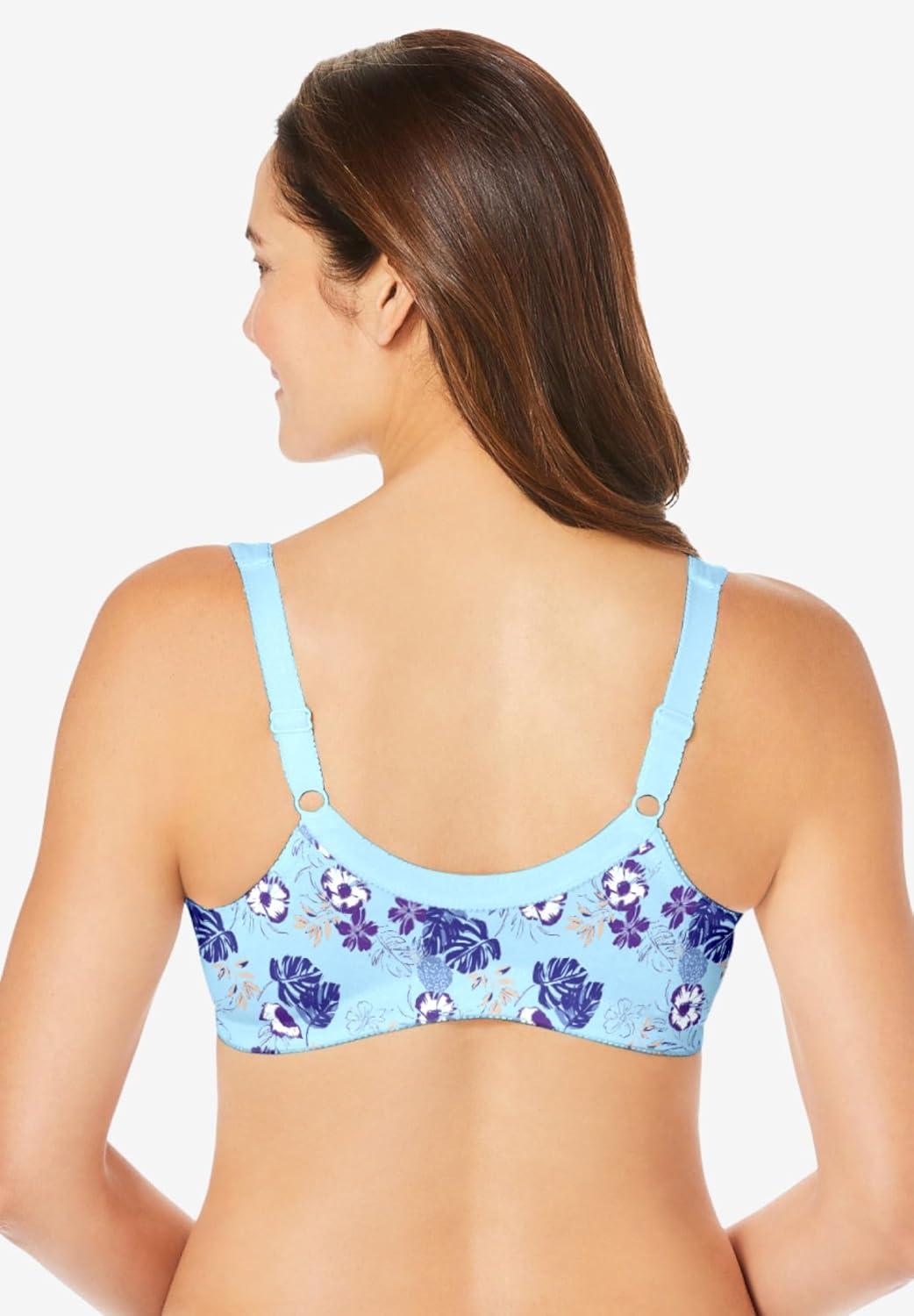 • Comfort Choice Women’s Plus Size 3-Pack Front-Close Cotton Wireless Bra(Tropical Pineapple Assorted)