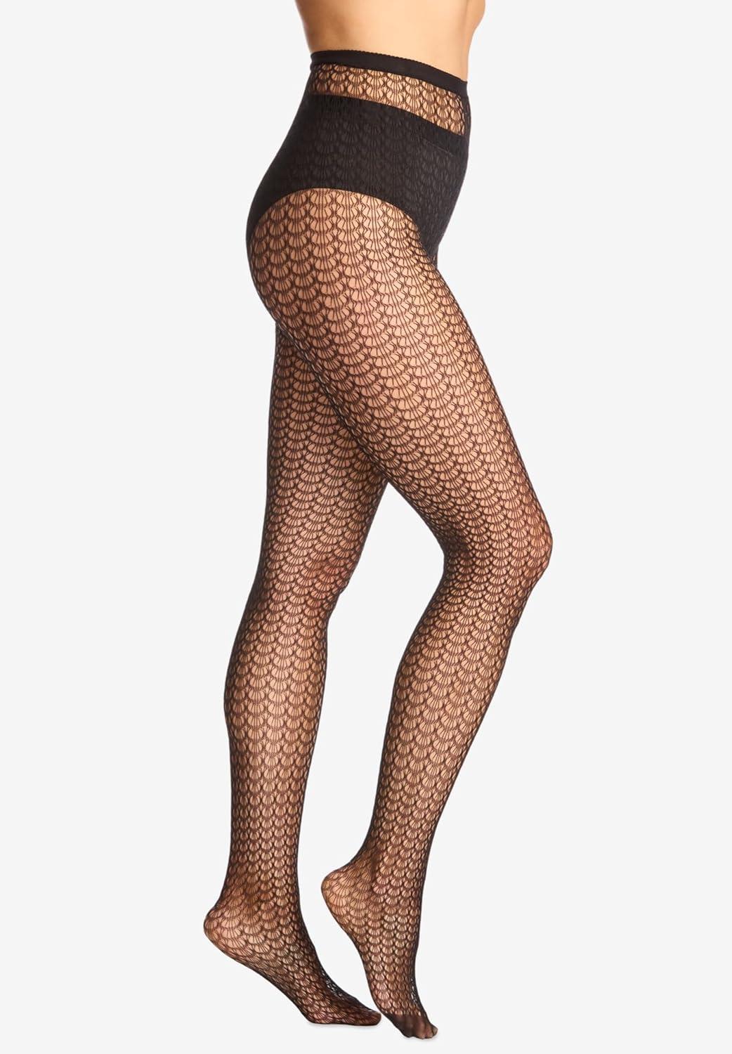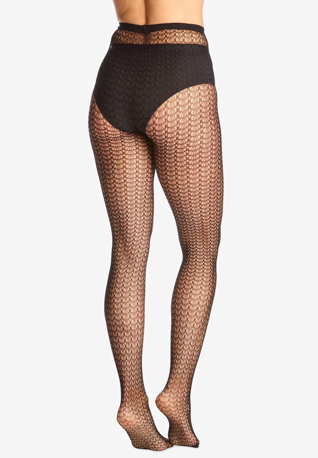 • Comfort Choice Women’s Plus Size Textured Pattern Tights(Black Scallop)