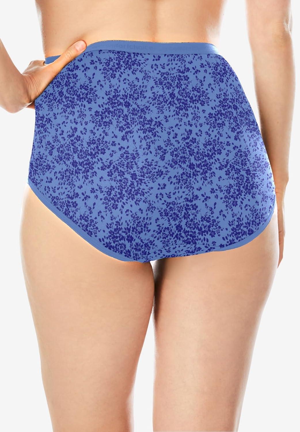 Comfort Choice Plus Size Full Coverage Stretch Cotton Brief 5-Pack(Floral Stripe Pack)