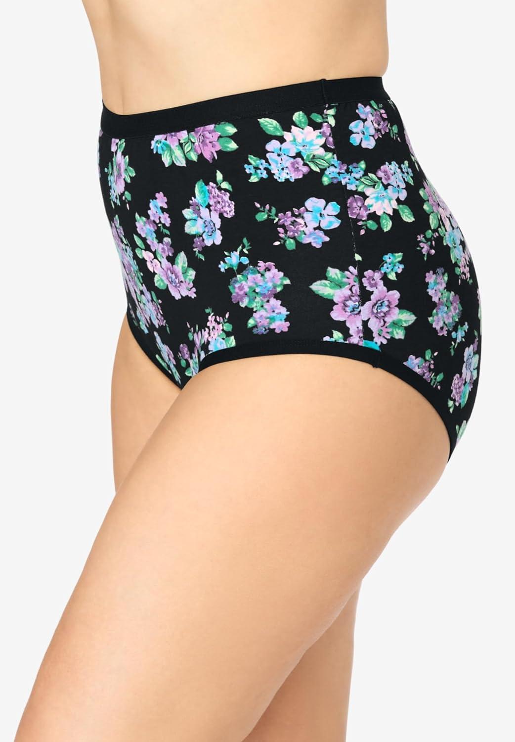 Comfort Choice Plus Size Full Coverage Stretch Cotton Brief 5-Pack(Black Bouquet Pack)