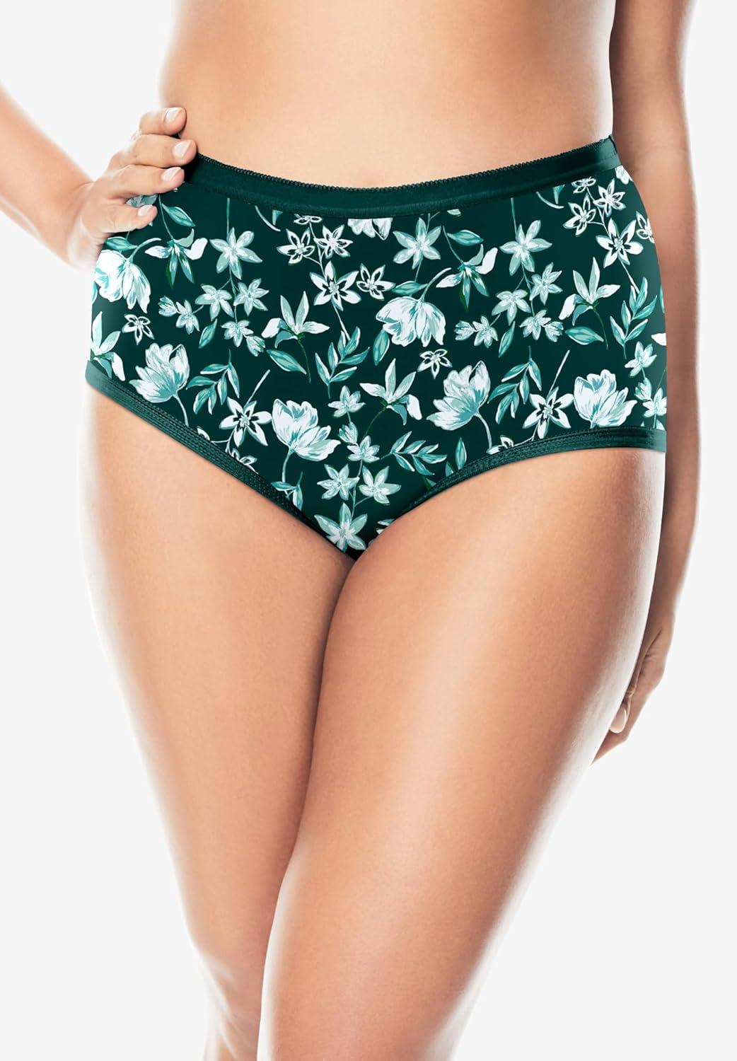 Comfort Choice Plus Size Full Coverage Nylon Brief 10-Pack(Swirl Floral Pack)