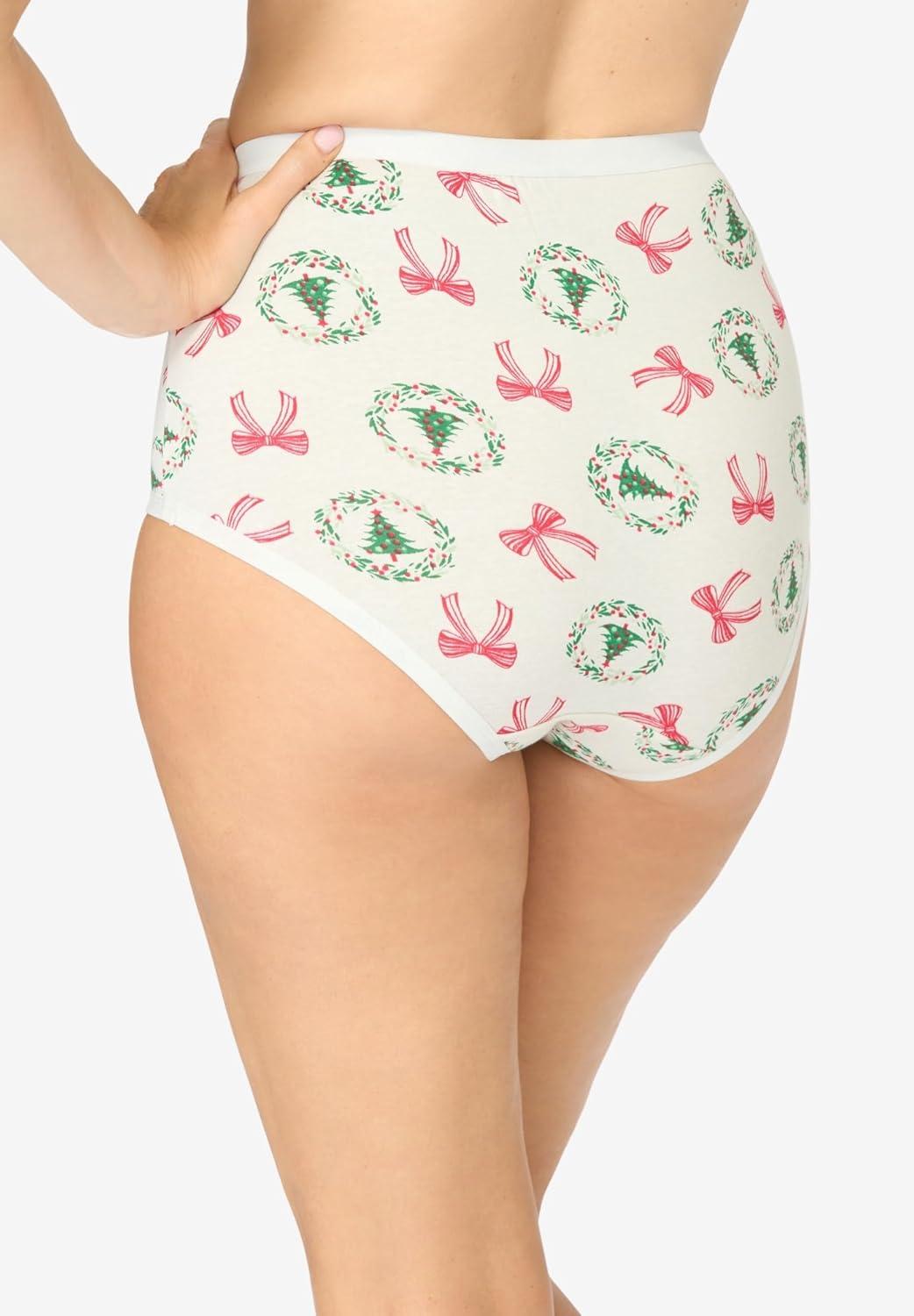 Comfort Choice Plus Size Full Coverage Stretch Cotton Brief 5-Pack(Holiday Wreath Pack)
