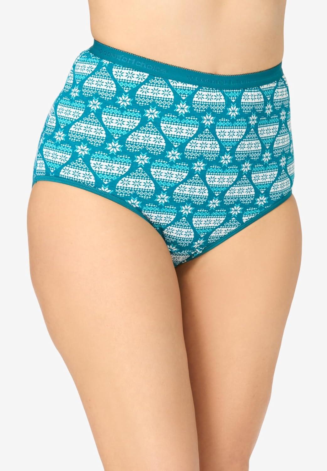 • Comfort Choice Plus Size Cotton Brief 5-Pack(Blue Floral Pack)