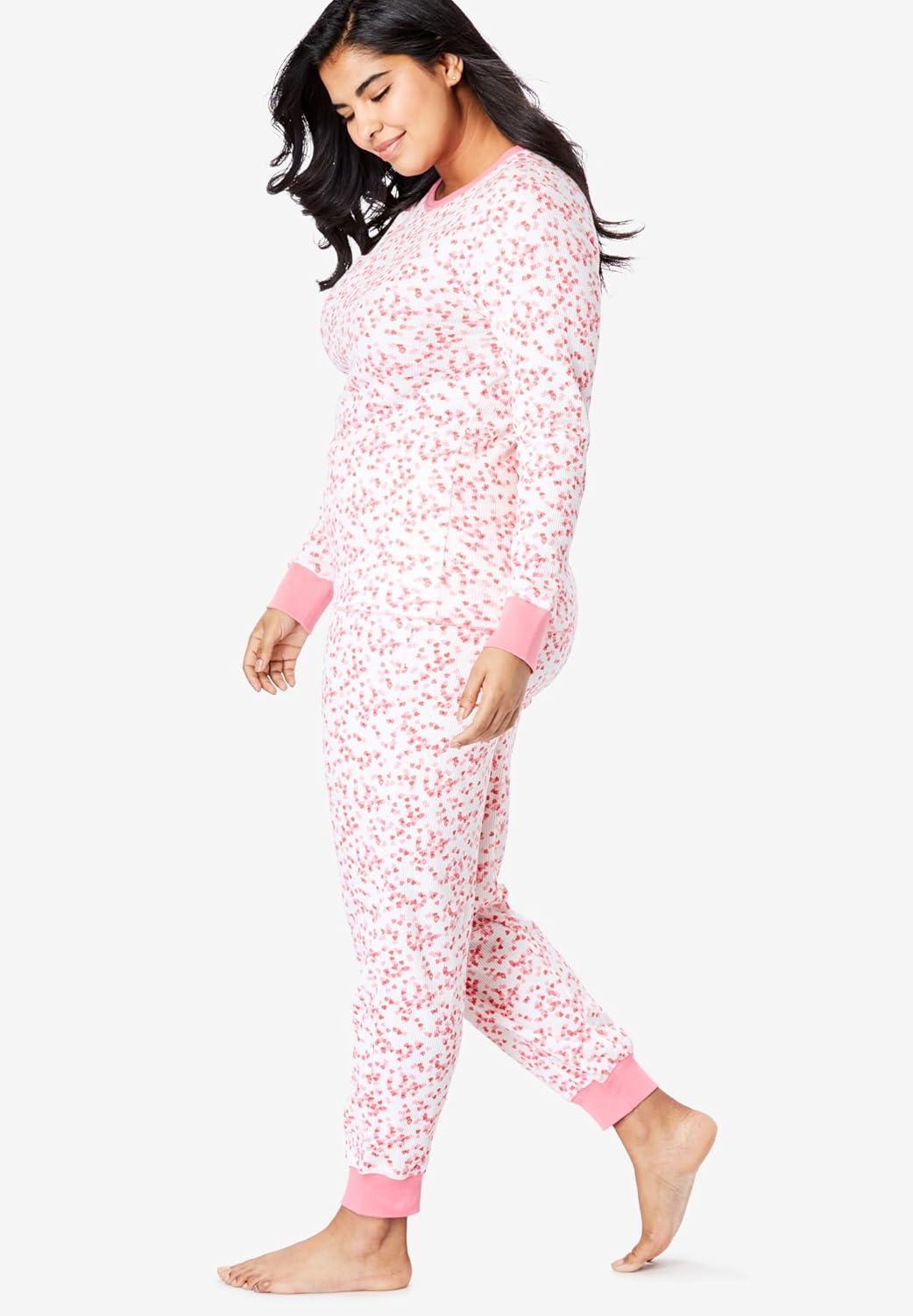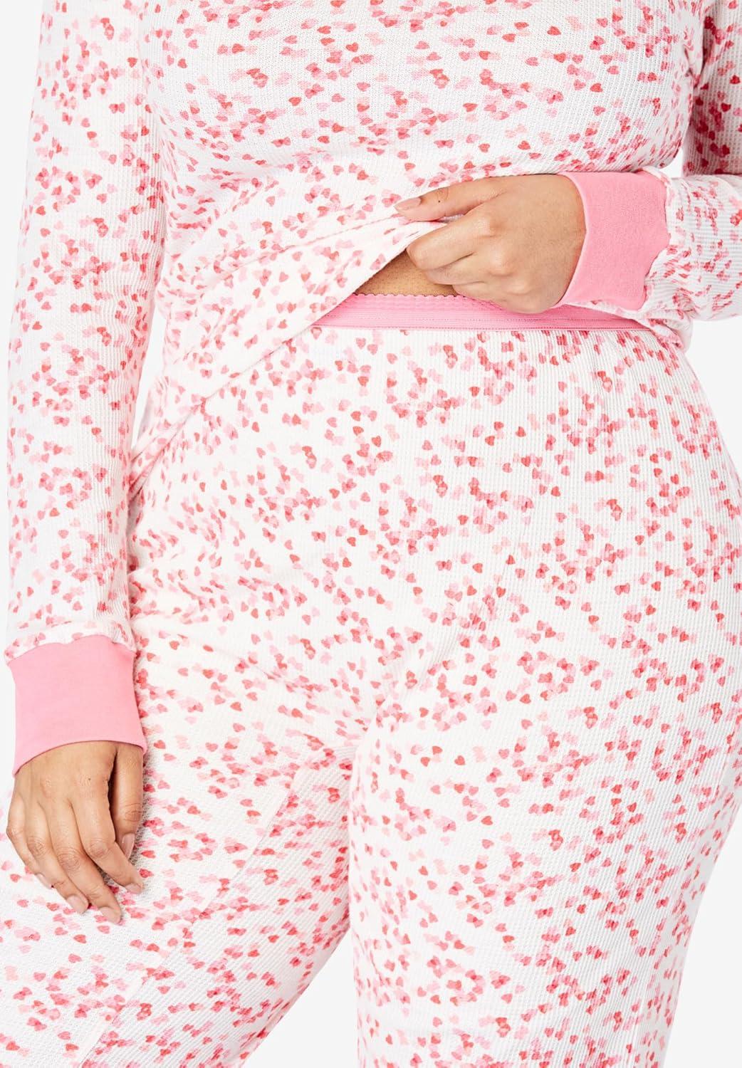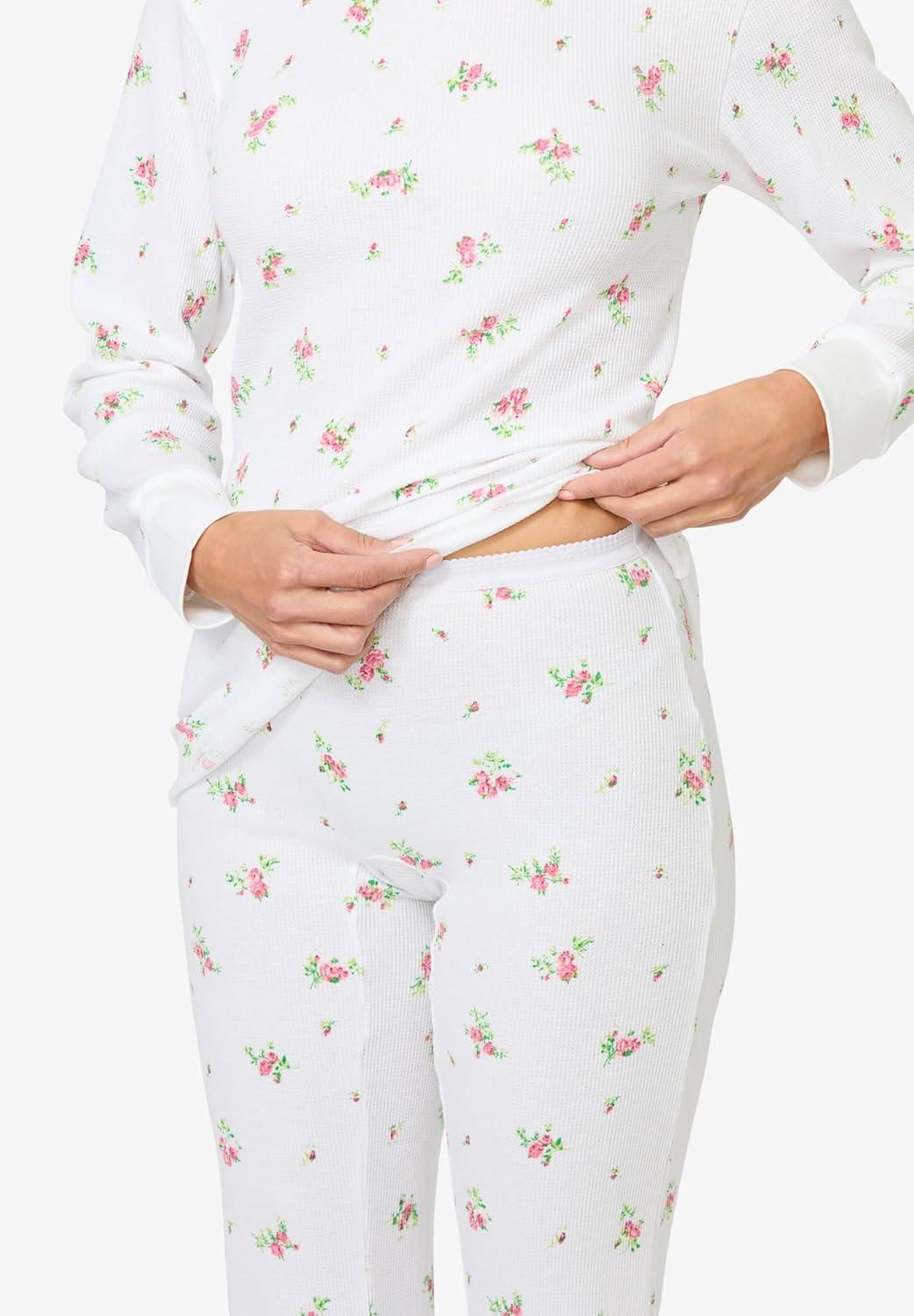 Comfort Choice Plus Size Thermal Crewneck Long-Sleeve Top(White Rose Bud)