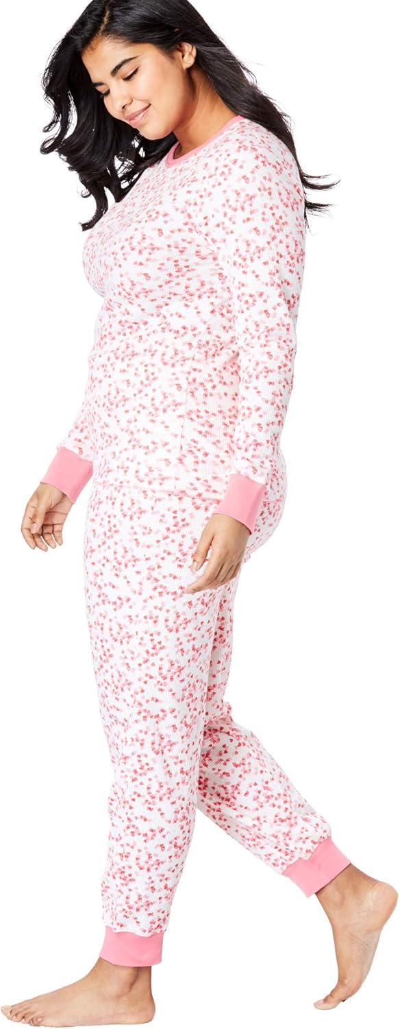 • Comfort Choice Plus Size Thermal Crewneck Long-Sleeve Top(White Rose Bud)