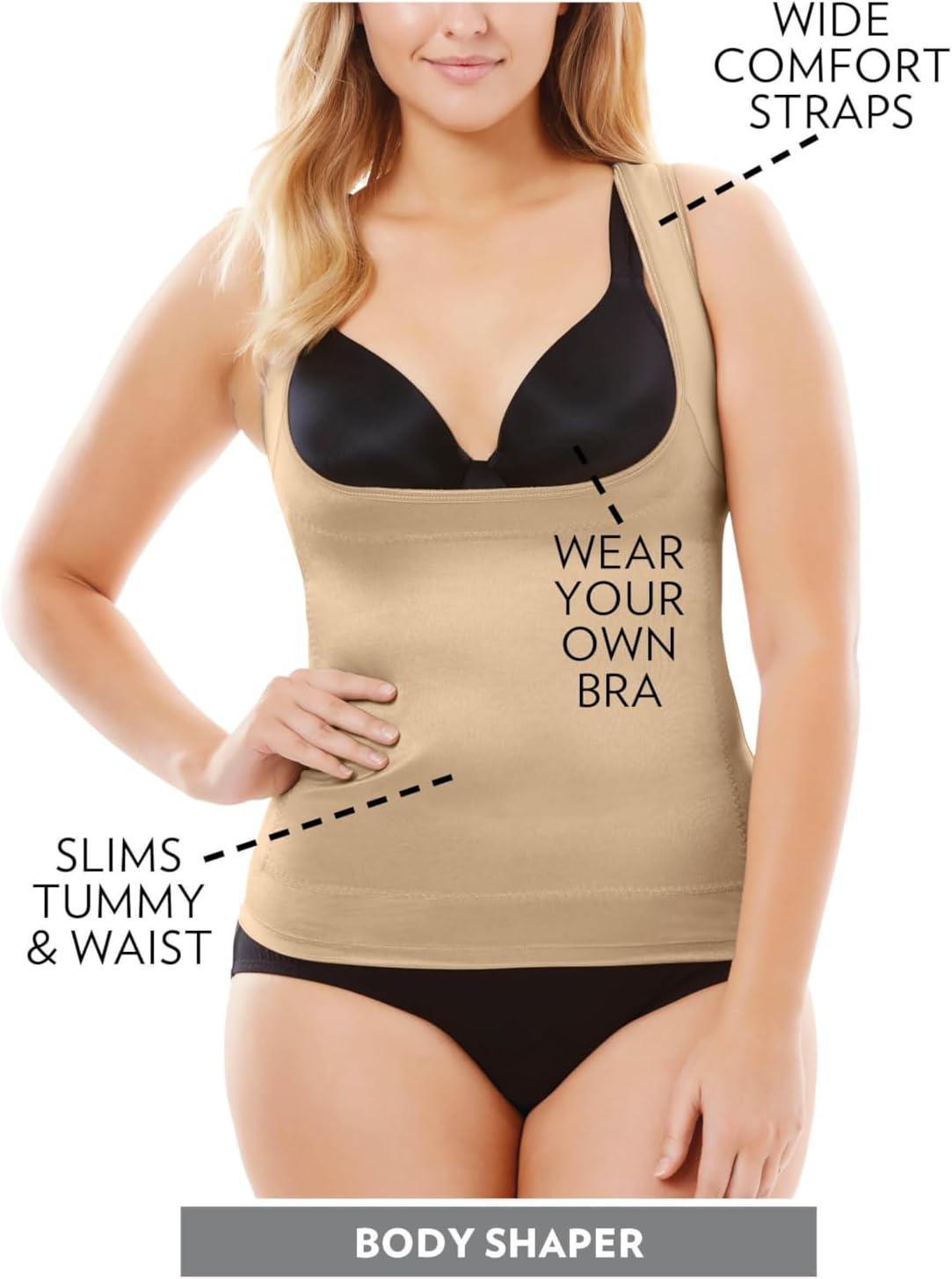 Secret Solutions Women’s Plus Size Power Shaper Firm Control Wear-Your-Own-Bra Shaper Tank(Nude)