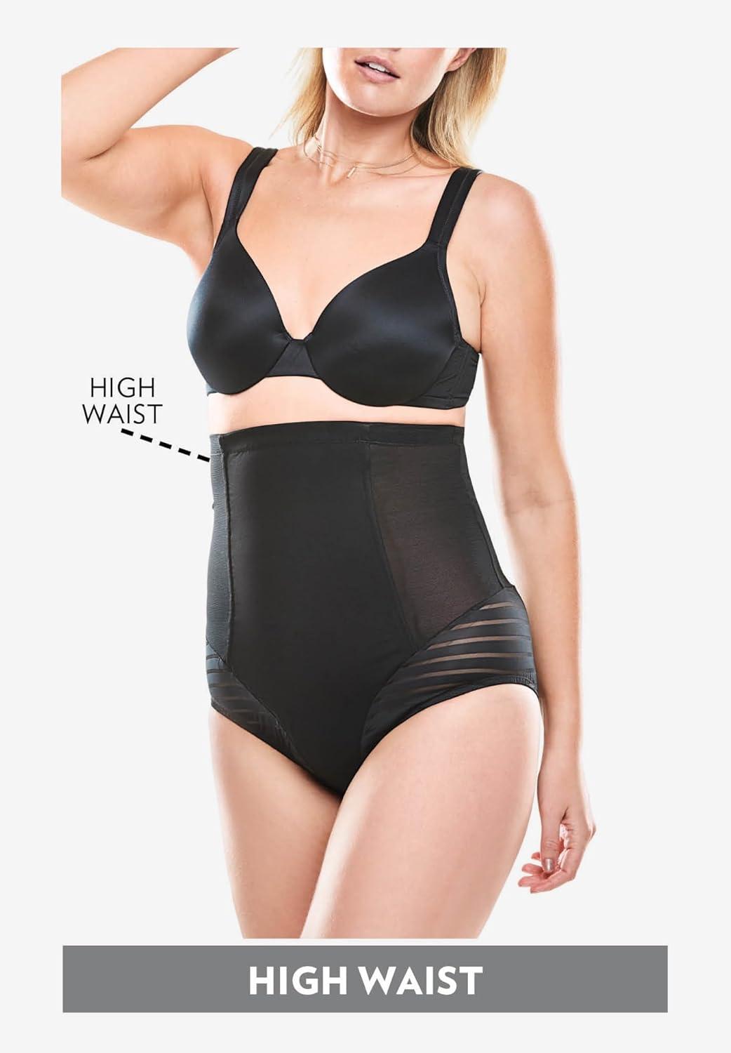 • Secret Solutions Women’s Plus Size Shadow Stripe Shaper High-Waist Brief(Black)